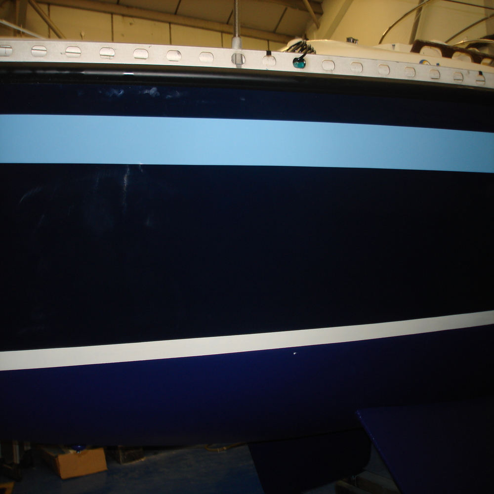 The hull was then re-taped and a new boot-top line was applied using Trilux (White)