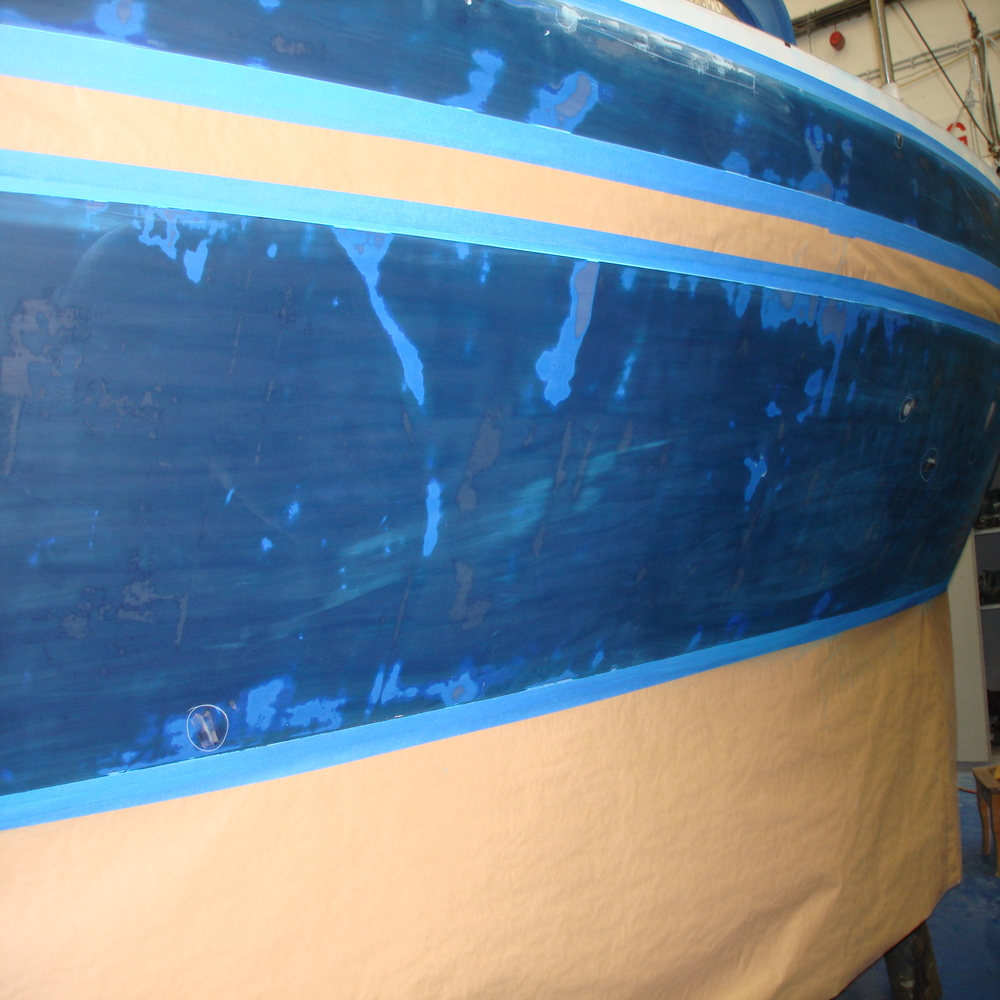 This was followed by a complete sand of the hull, all fine line tape was replaced if required.