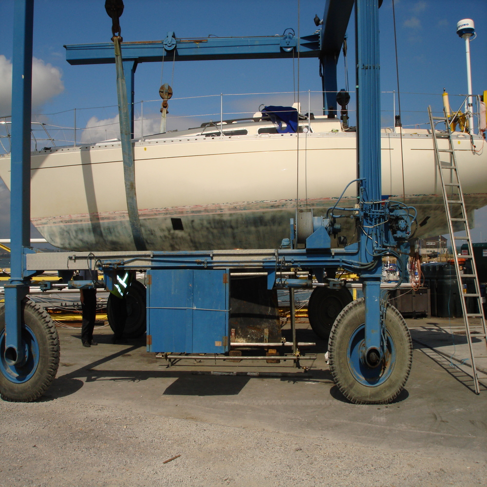 Luckily the owner was able to motor her back to Southsea Marina and the next day the boat was lifted out of the water for the initial inspection.