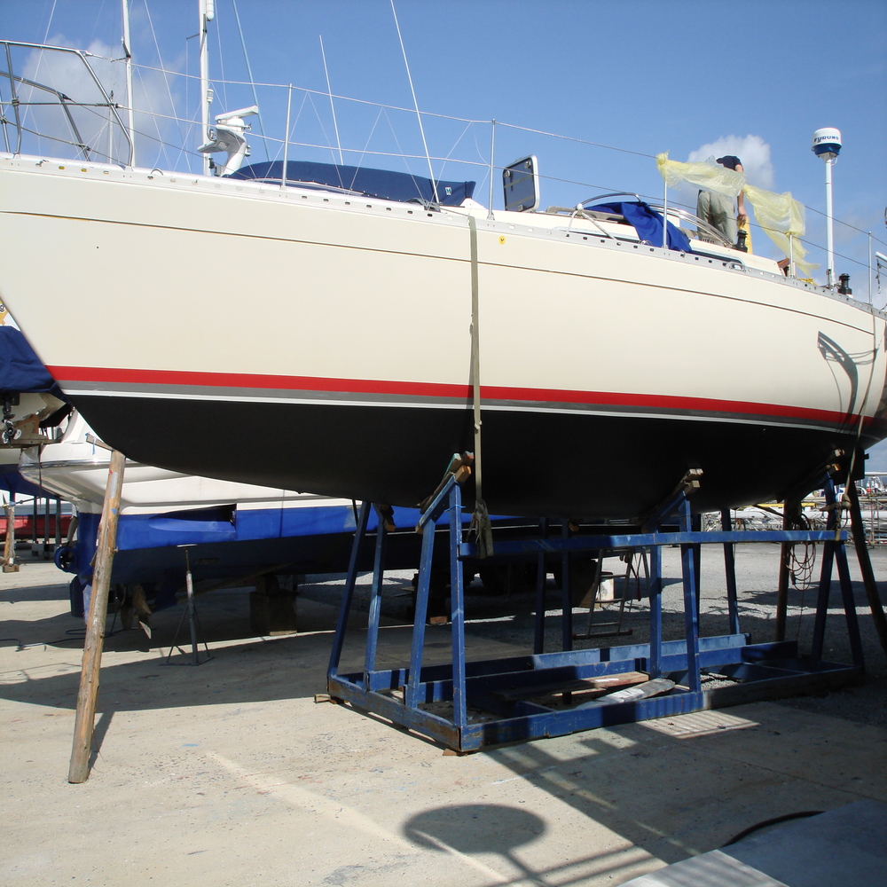 We removed all the old anti-foul from the hull and re-applied new hull lines.