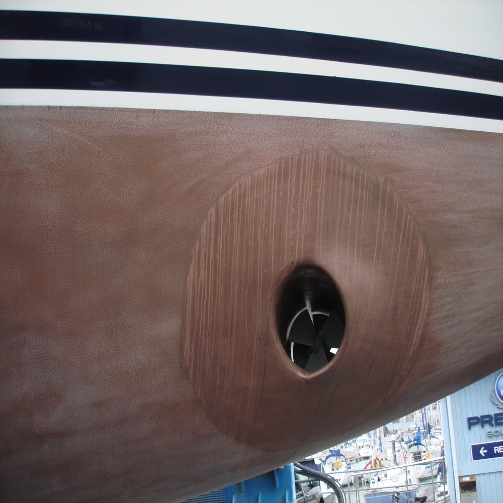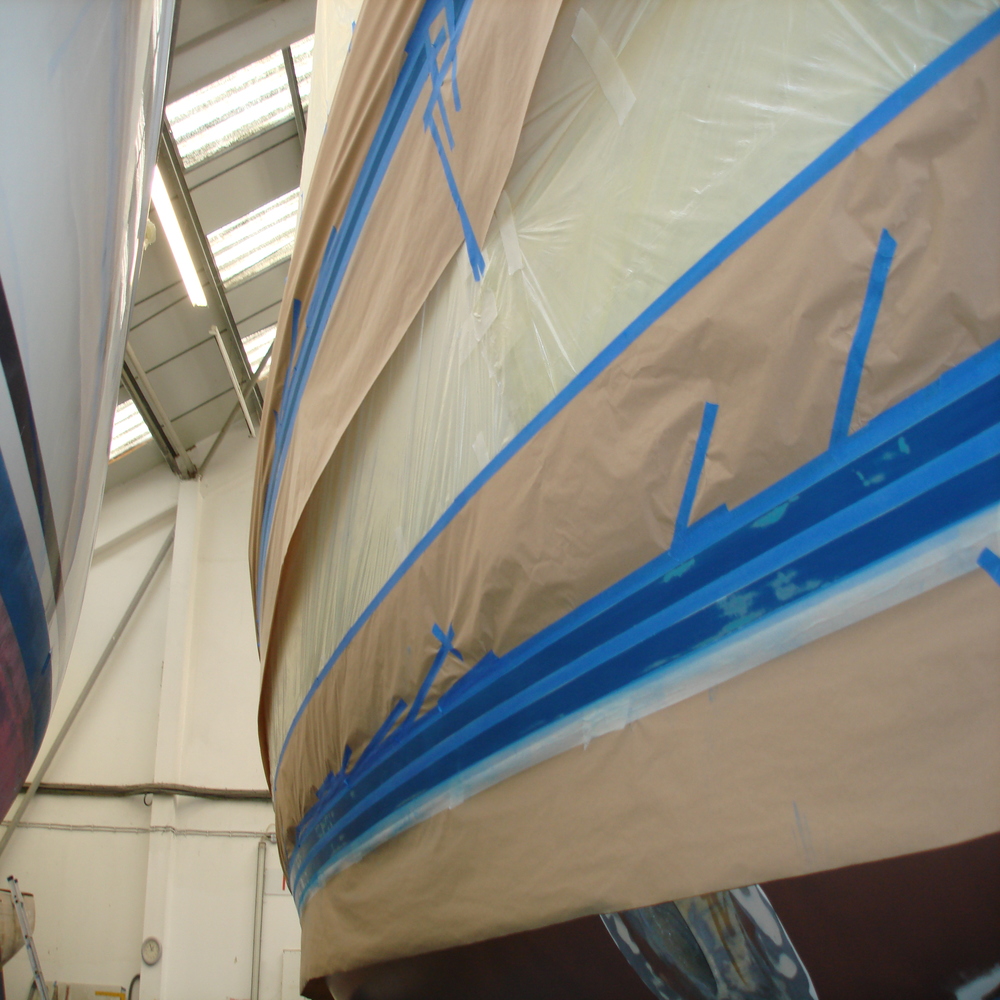 Its 2014 the Oyster is already in the workshop having a copper coat application carried, so the owner opted to have the hull lines re-sprayed.