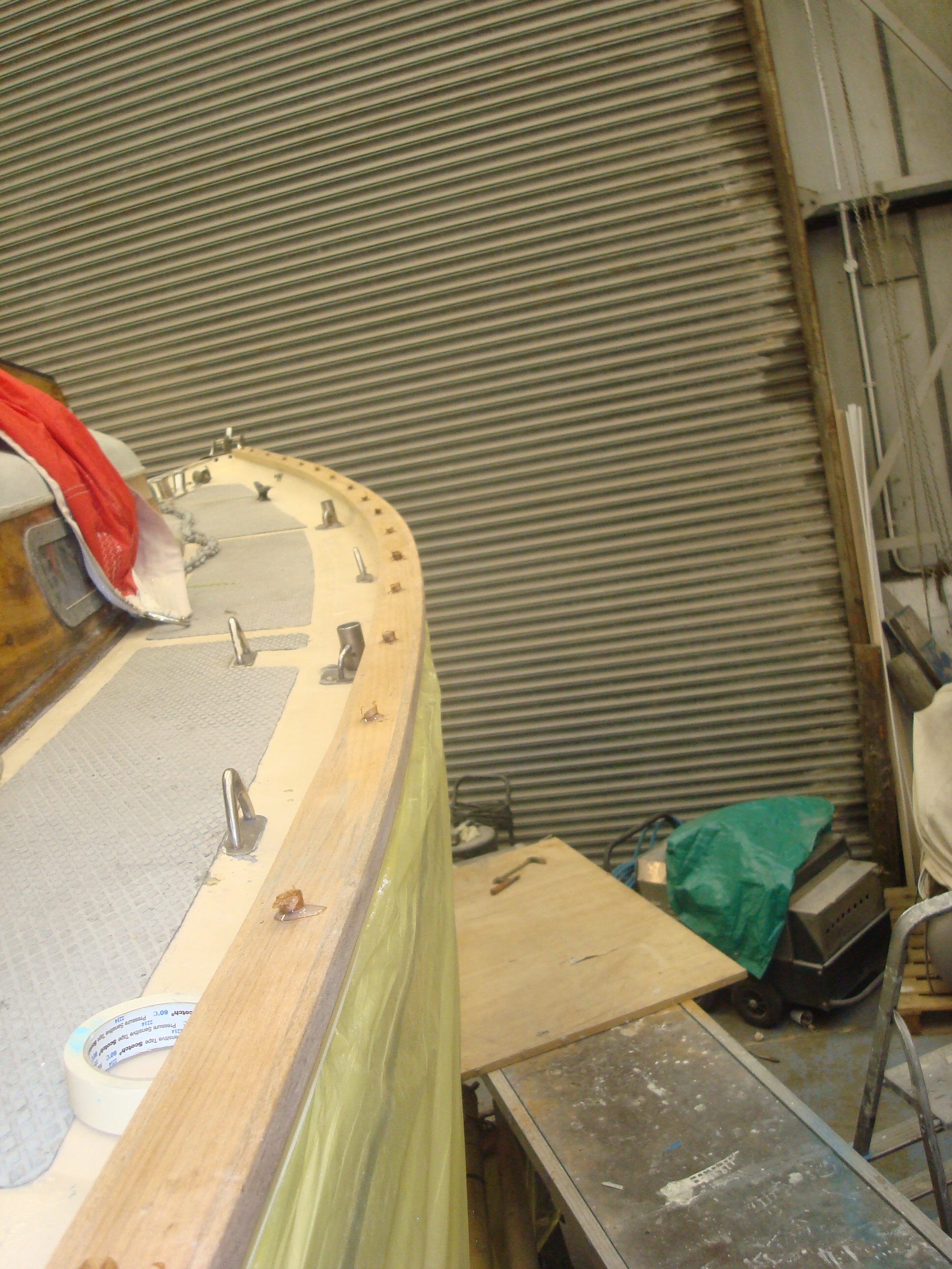 Another job done on the twister while she was with us in 2010/2011 – New teak toe rail