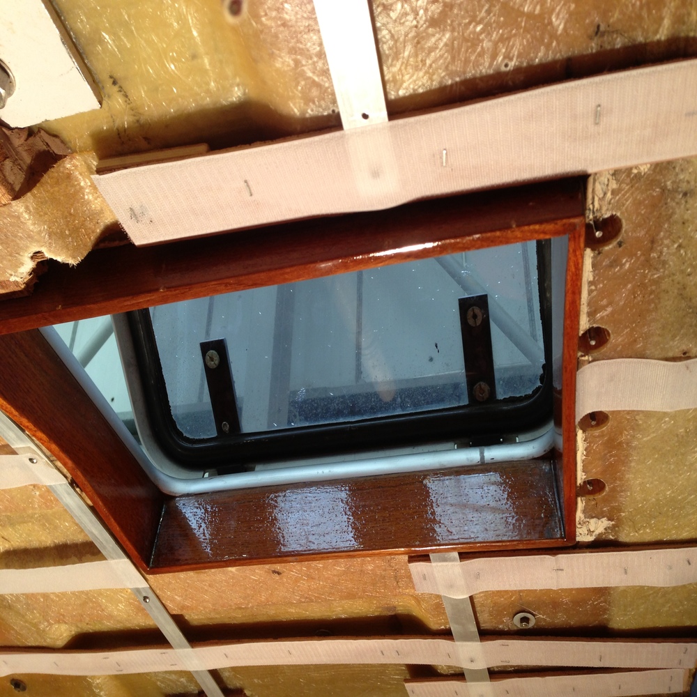 All surface areas were cleaned in preparation for the new headlining to go back up. Once up they were finished off with teak battening, varnished with 2 coats of Gloss varnish.