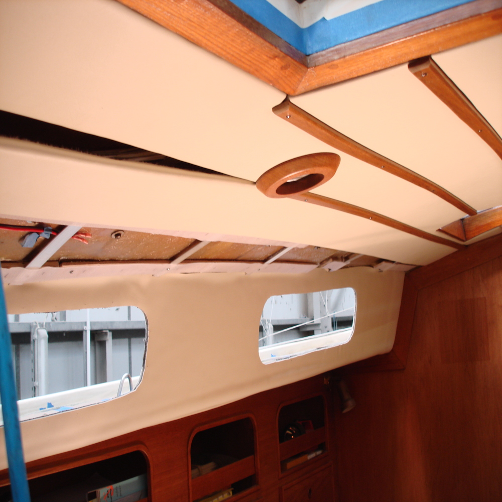 While in the workshop the owner opted to have some areas of the boat refurbished, starting with the headlining’