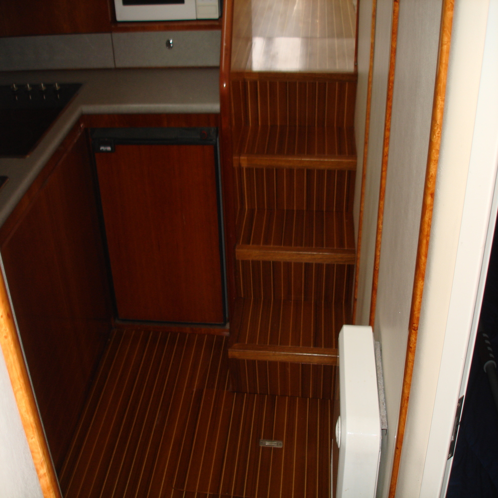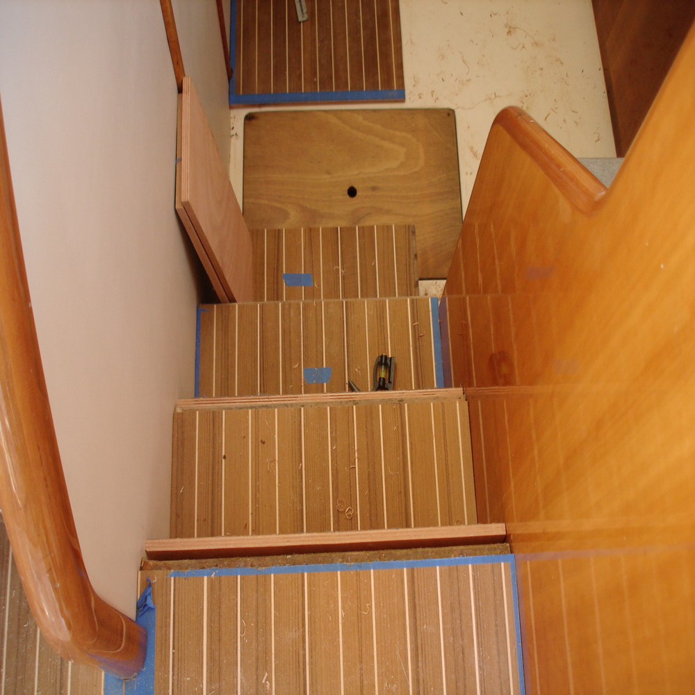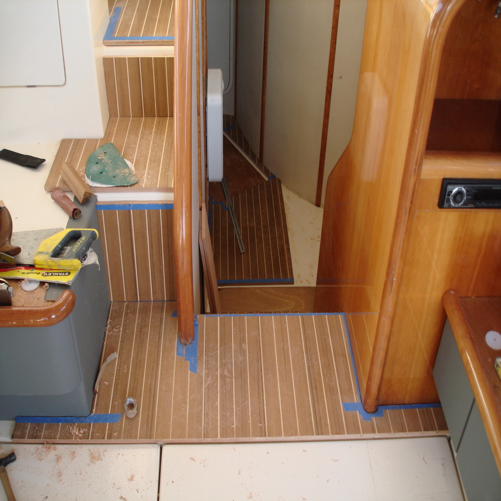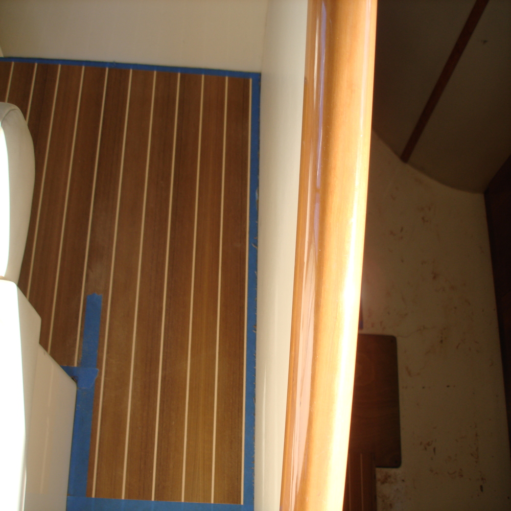 The first stage of the project was for the old carpet flooring to removed from the saloon, cabin hallway, galley and steering area.