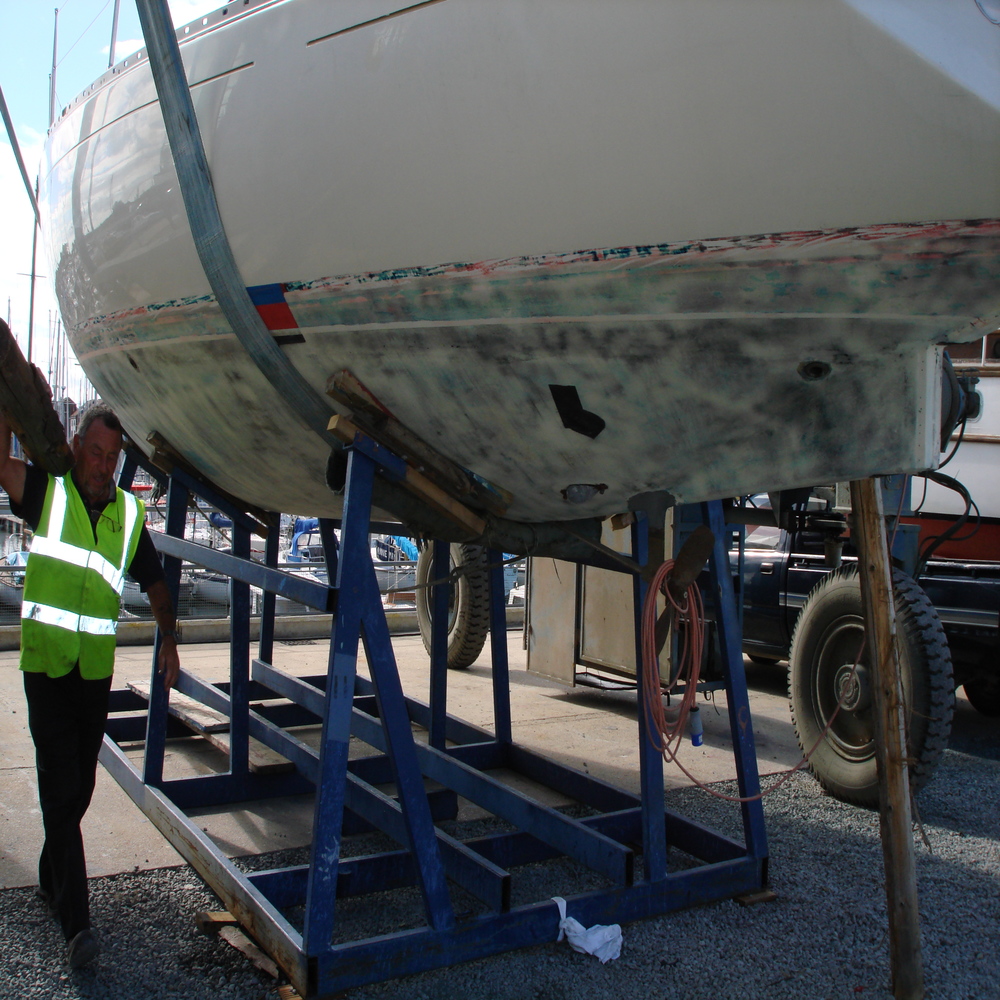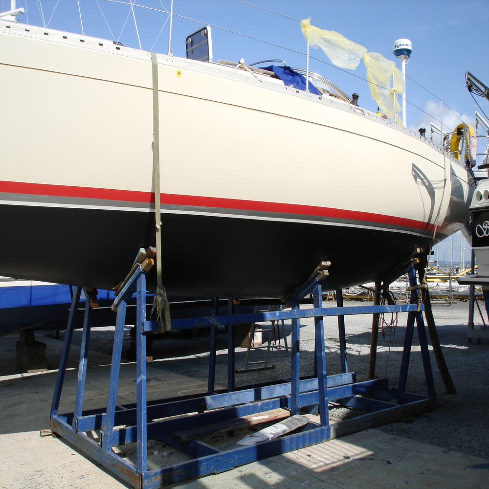 We removed all the old anti-foul from the hull and re-applied new hull lines.