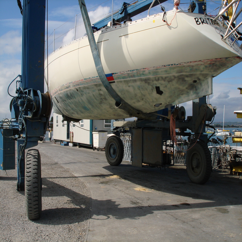 Luckily the owner was able to motor her back to Southsea Marina and the next day the boat was lifted out of the water for the initial inspection.