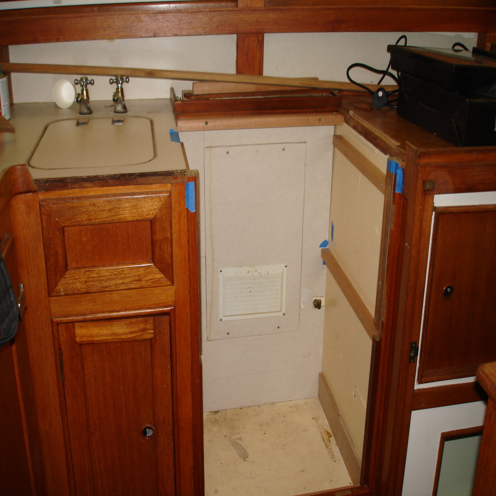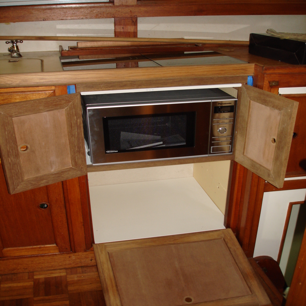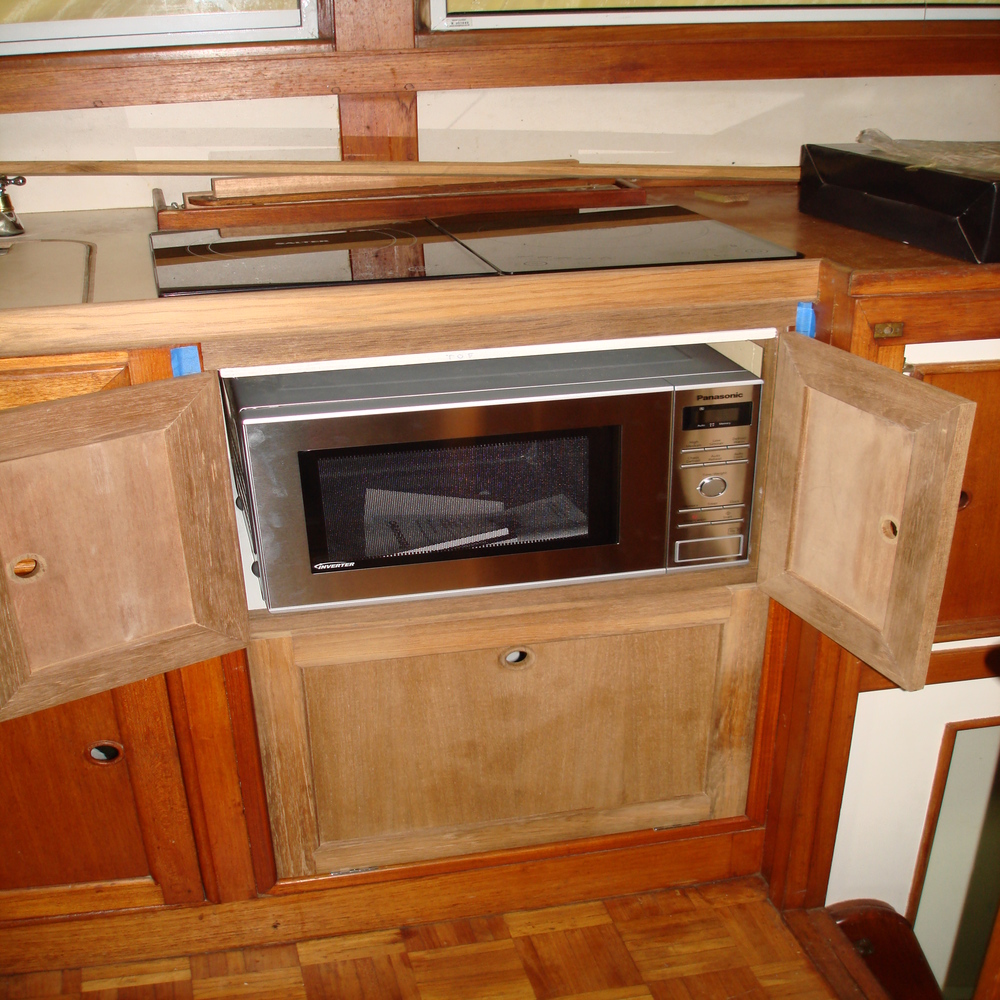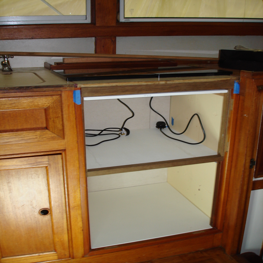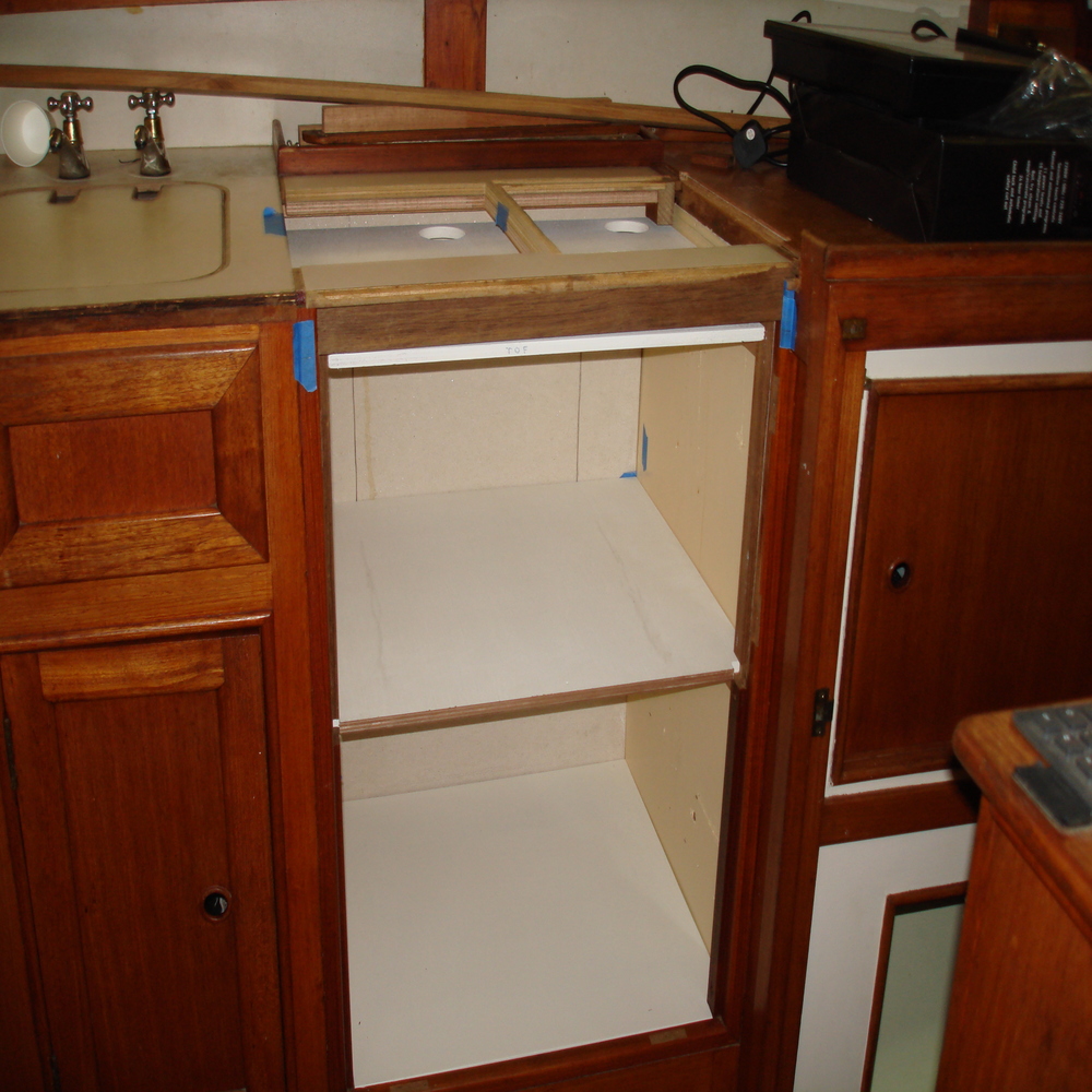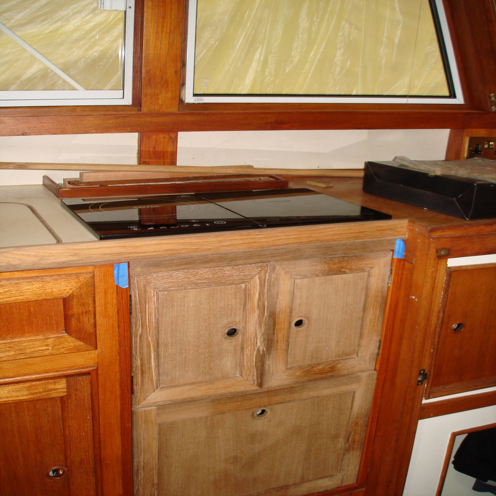 We then set about making 3 new doors from teak for the new galley unit to match in with originals, we then painted the insides white.