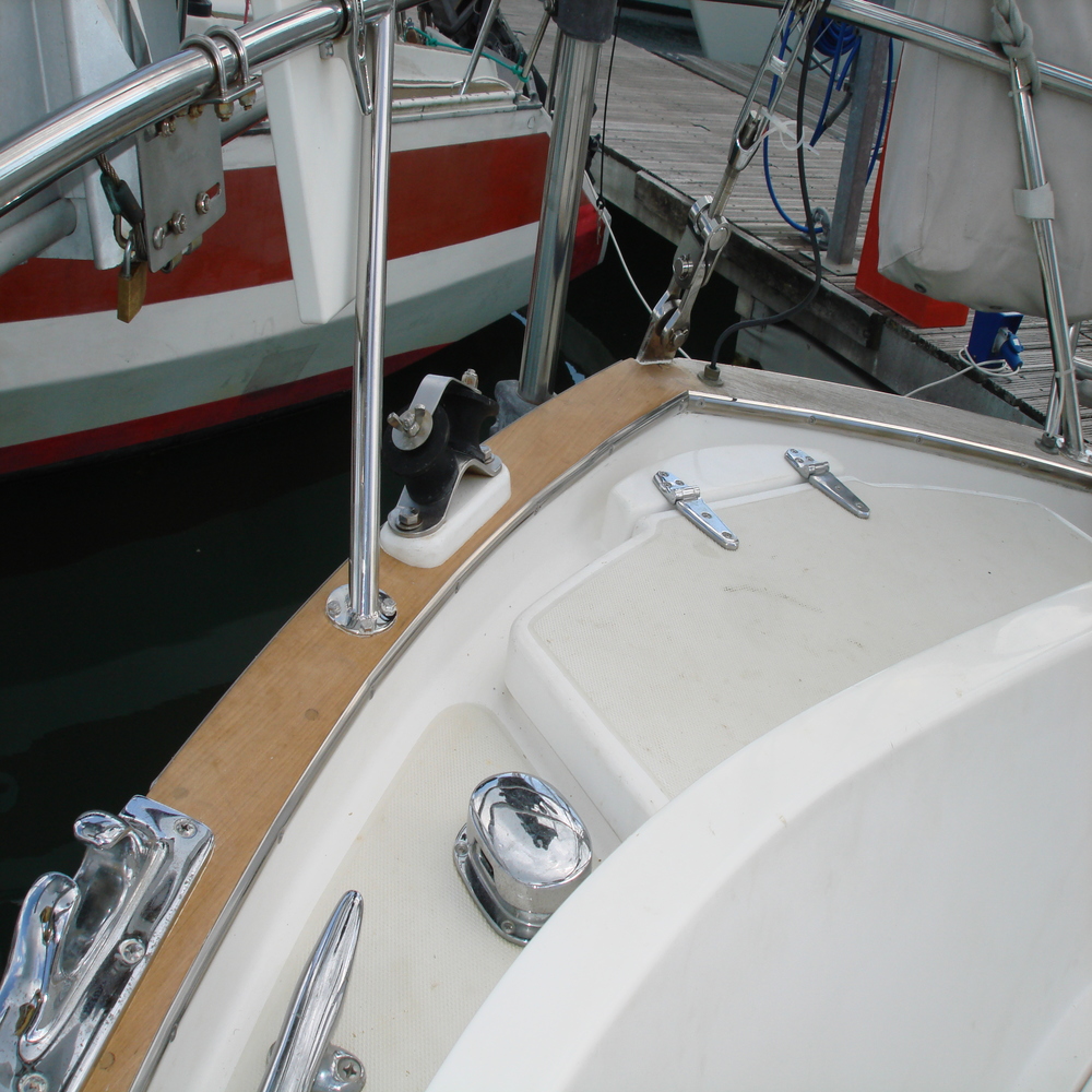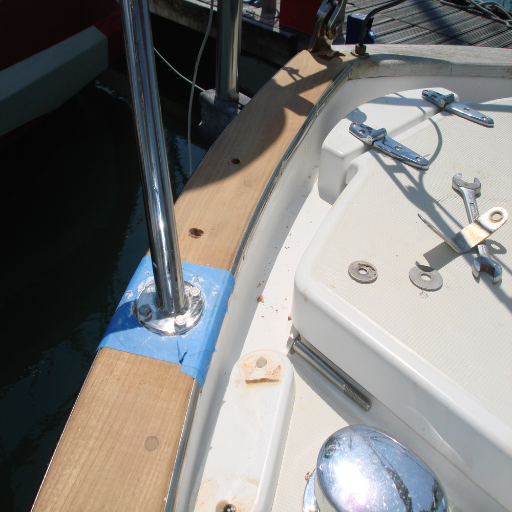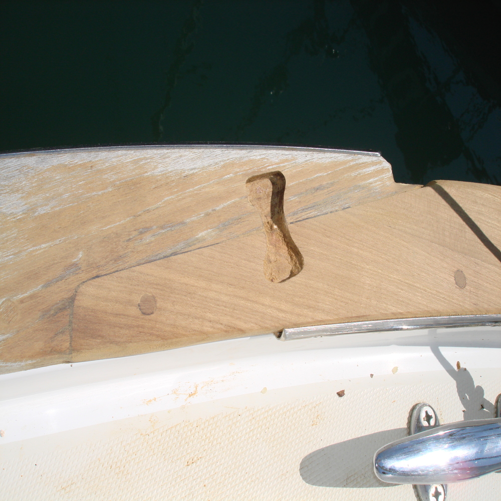 we removed the damaged section of teak from the toe rail, we supplied a brand new section of teak, this was templated for fitting before being cut to shape.