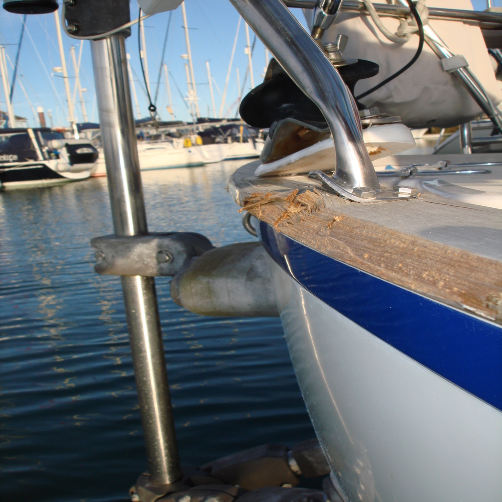 Once we had acceptance for the insurance company we proceeded to remove the push-pit from the boat along with all the fixings in way of the damaged section of the teak toe rail, it was noted of removal that the aft guild roller bolts were damaged so this had to have brand new replacements.