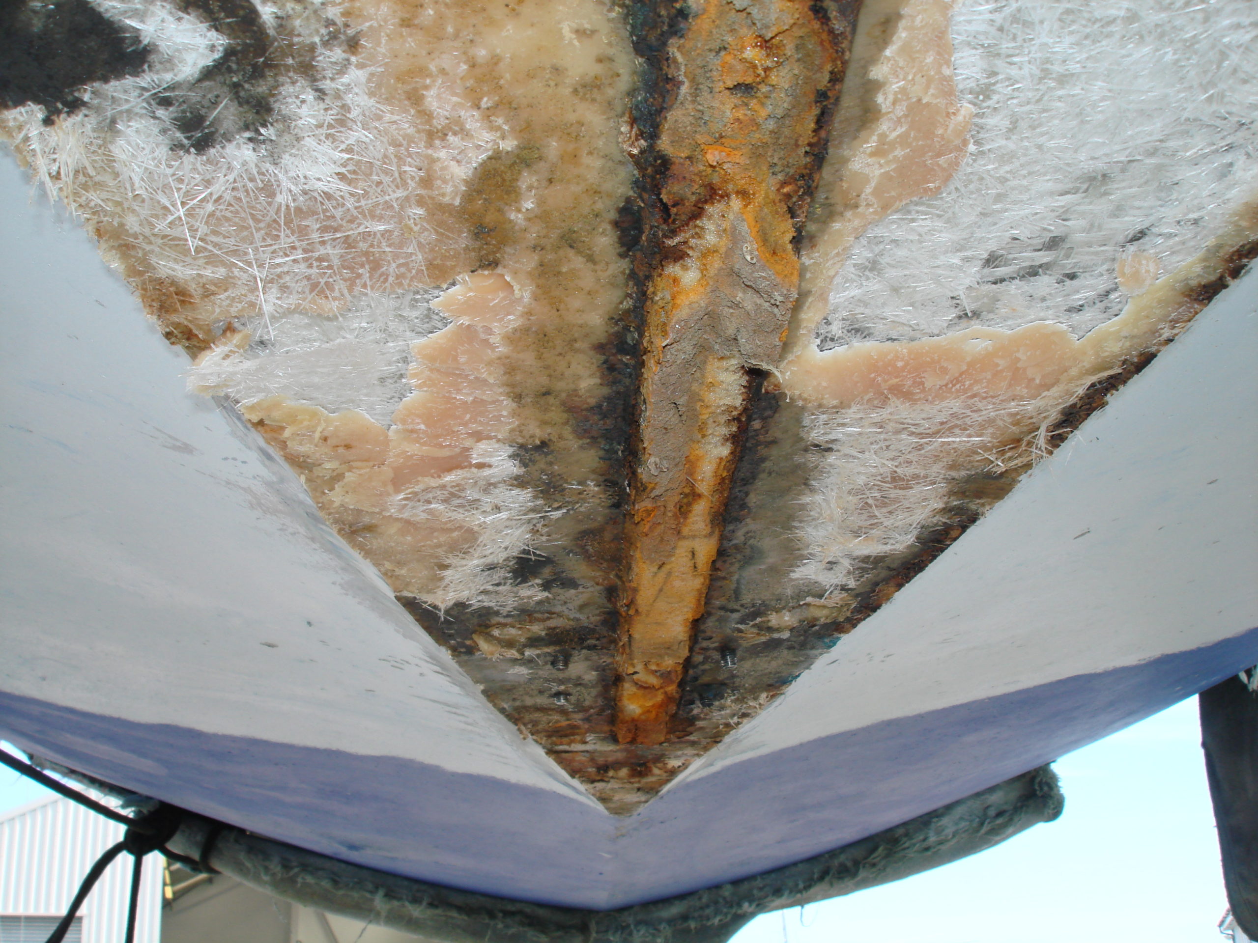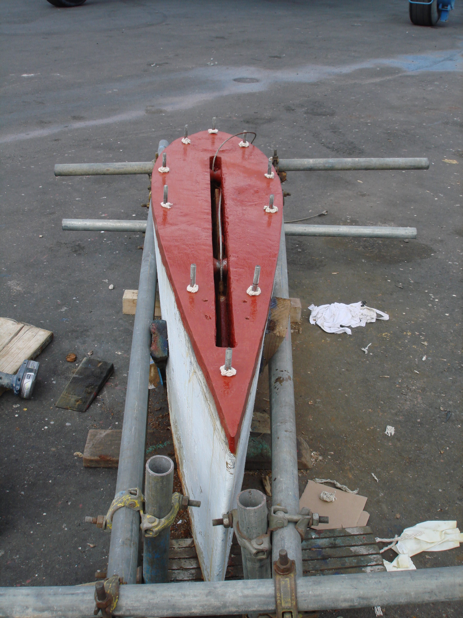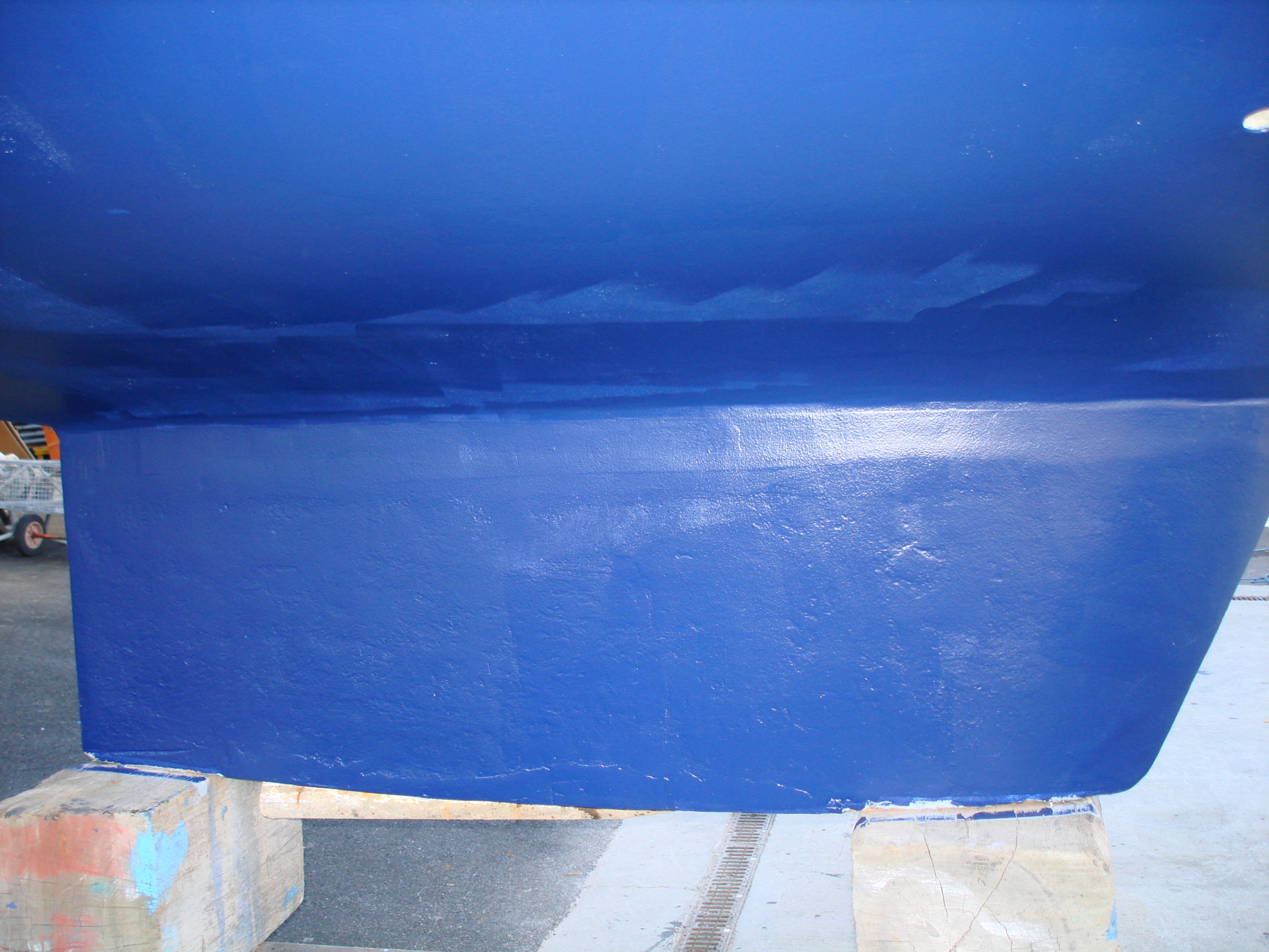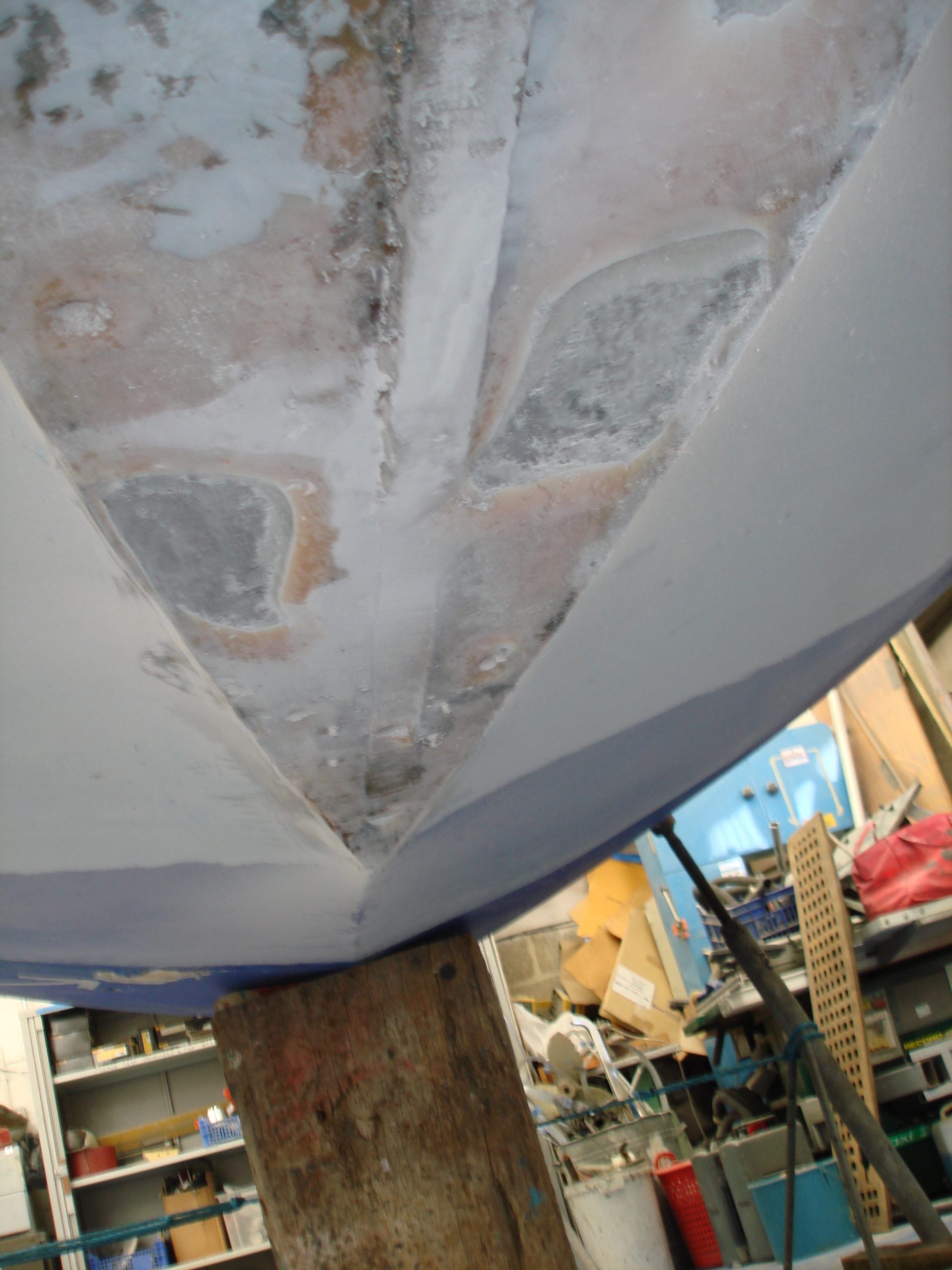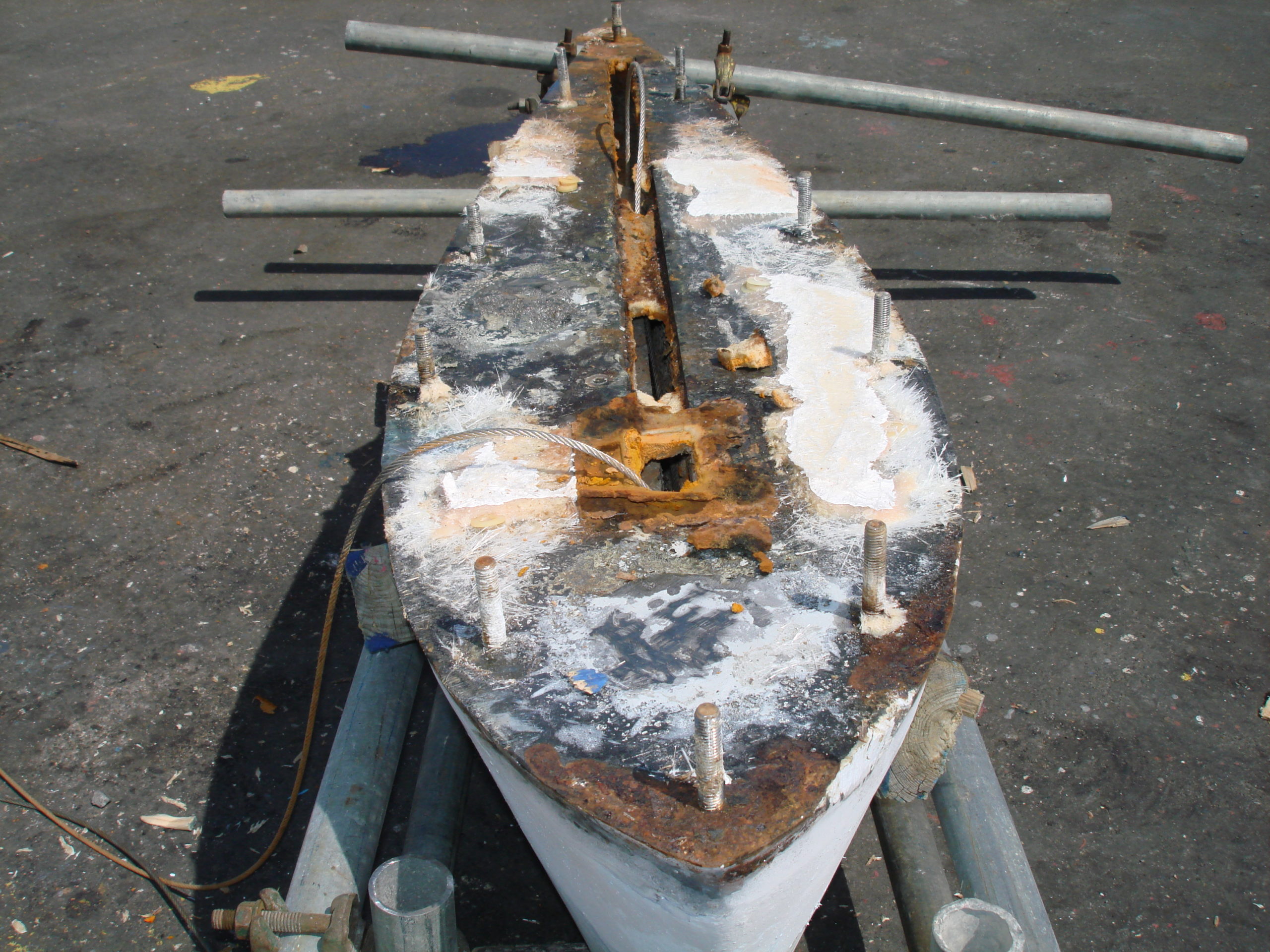 Upon removal of the keel there was some fracturing found on the laminate face of the hull, we had to repair this by grinding back the hull join in way of fracture, laminate back to good glass then re-laminate area back to orginal thickness.