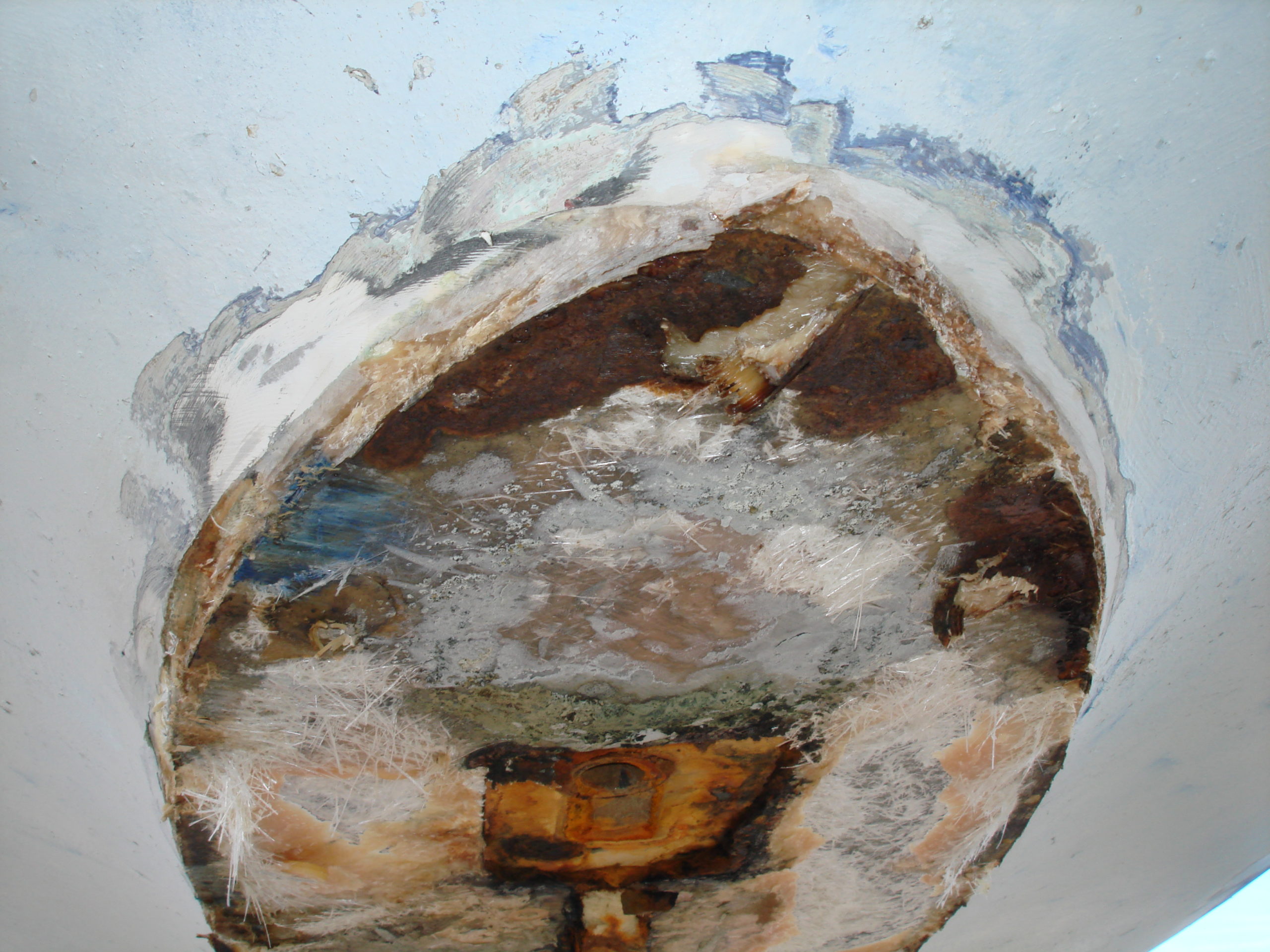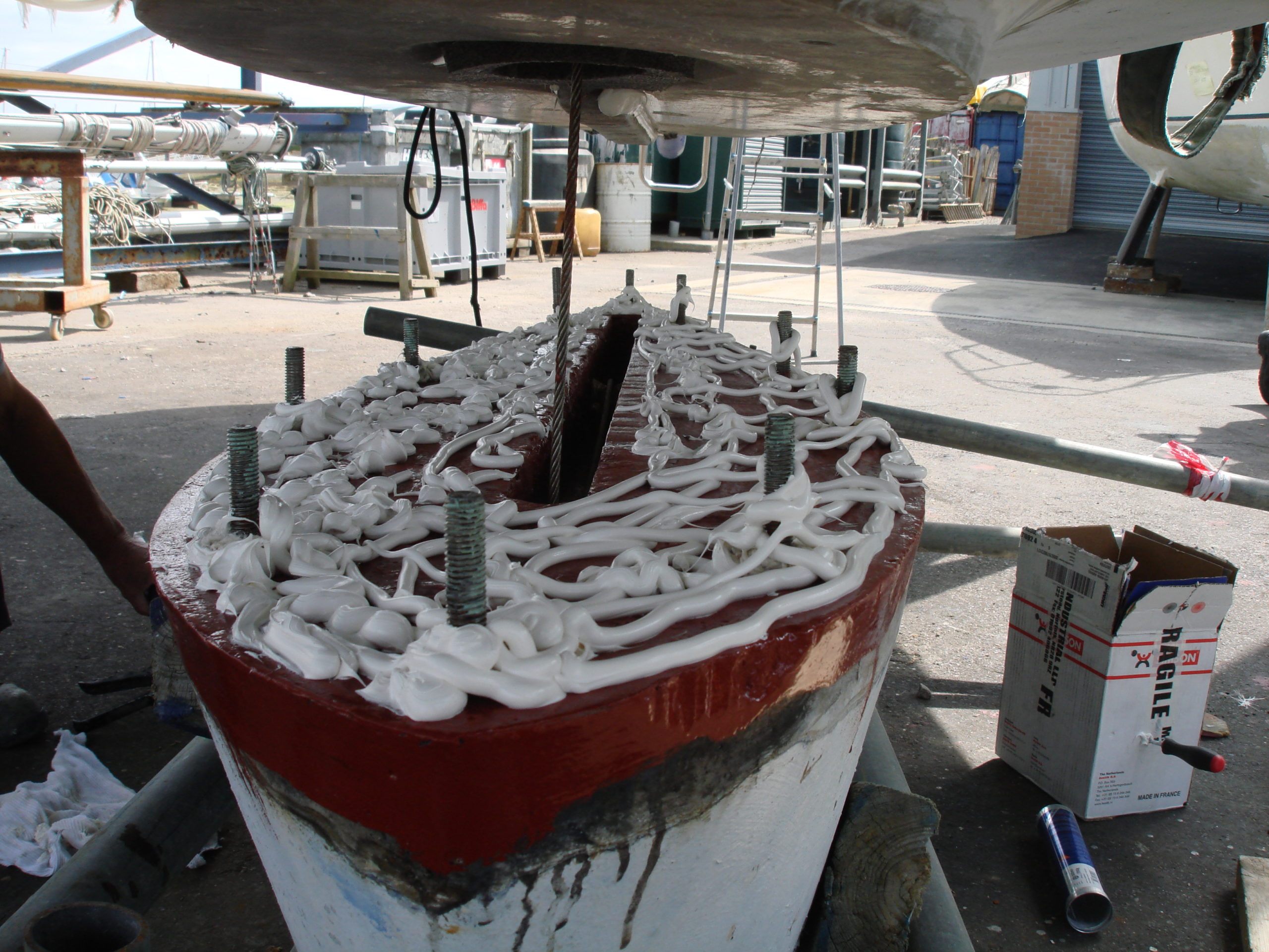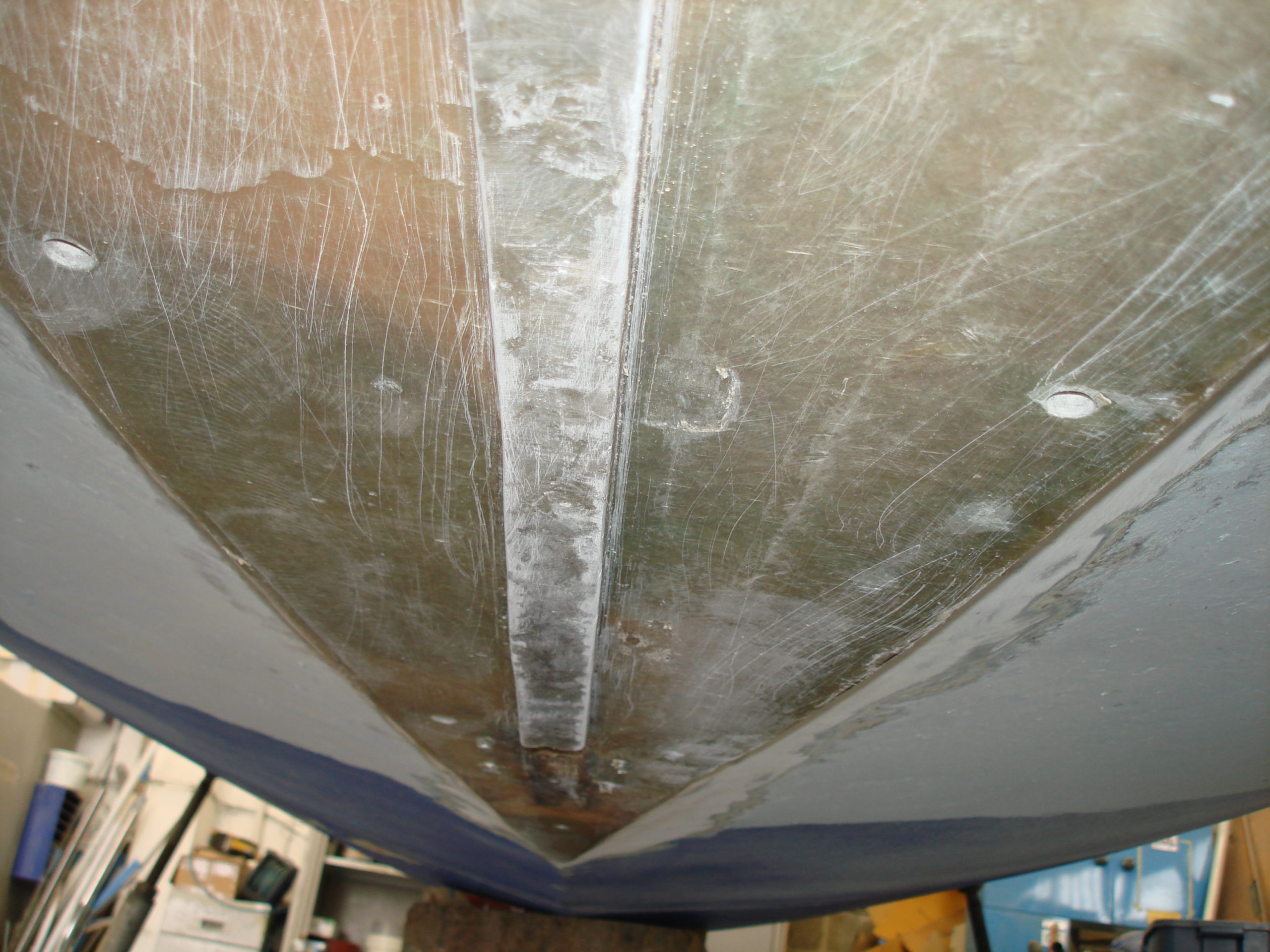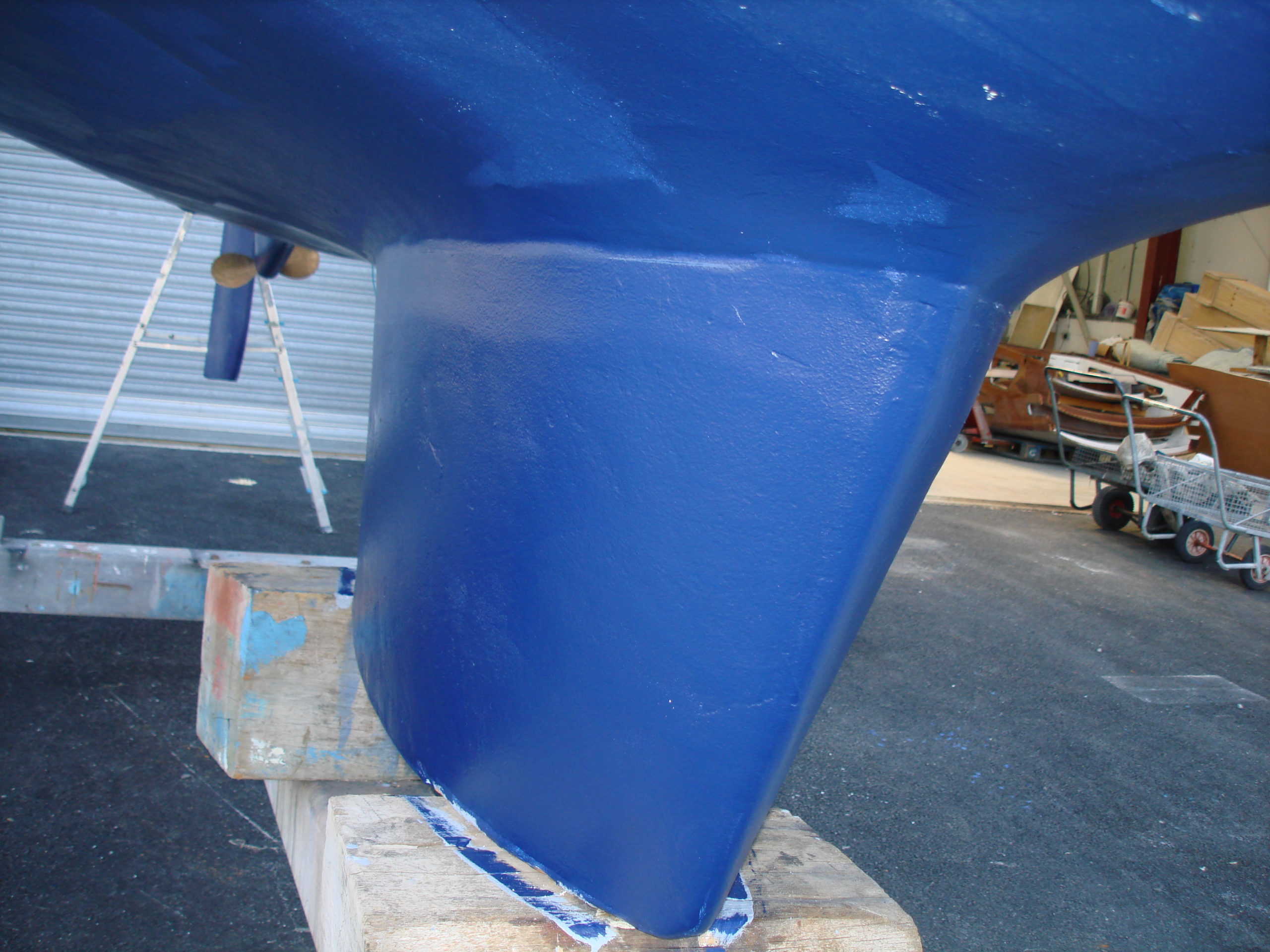 Upon removal of the keel there was some fracturing found on the laminate face of the hull, we had to repair this by grinding back the hull join in way of fracture, laminate back to good glass then re-laminate area back to orginal thickness.