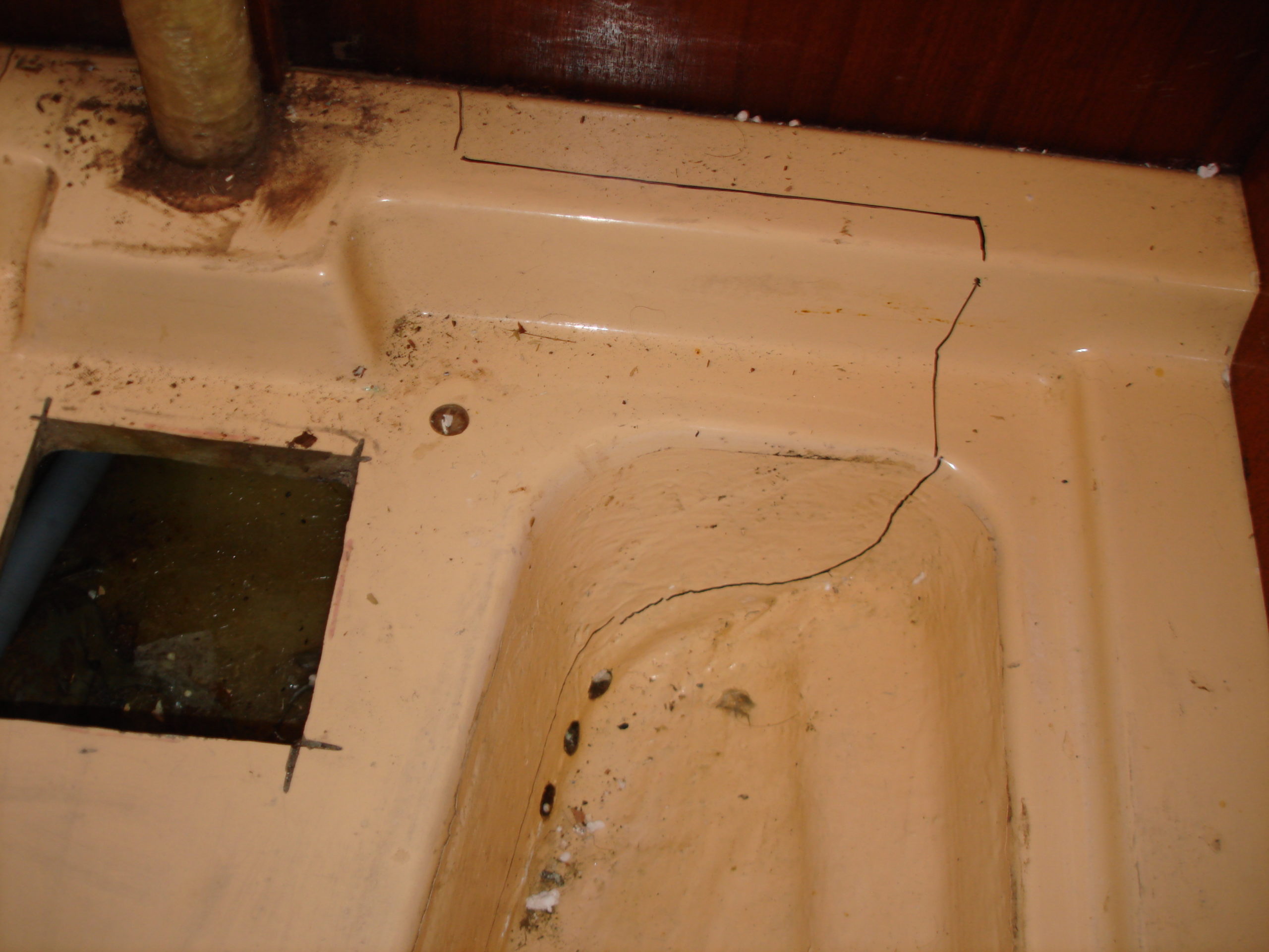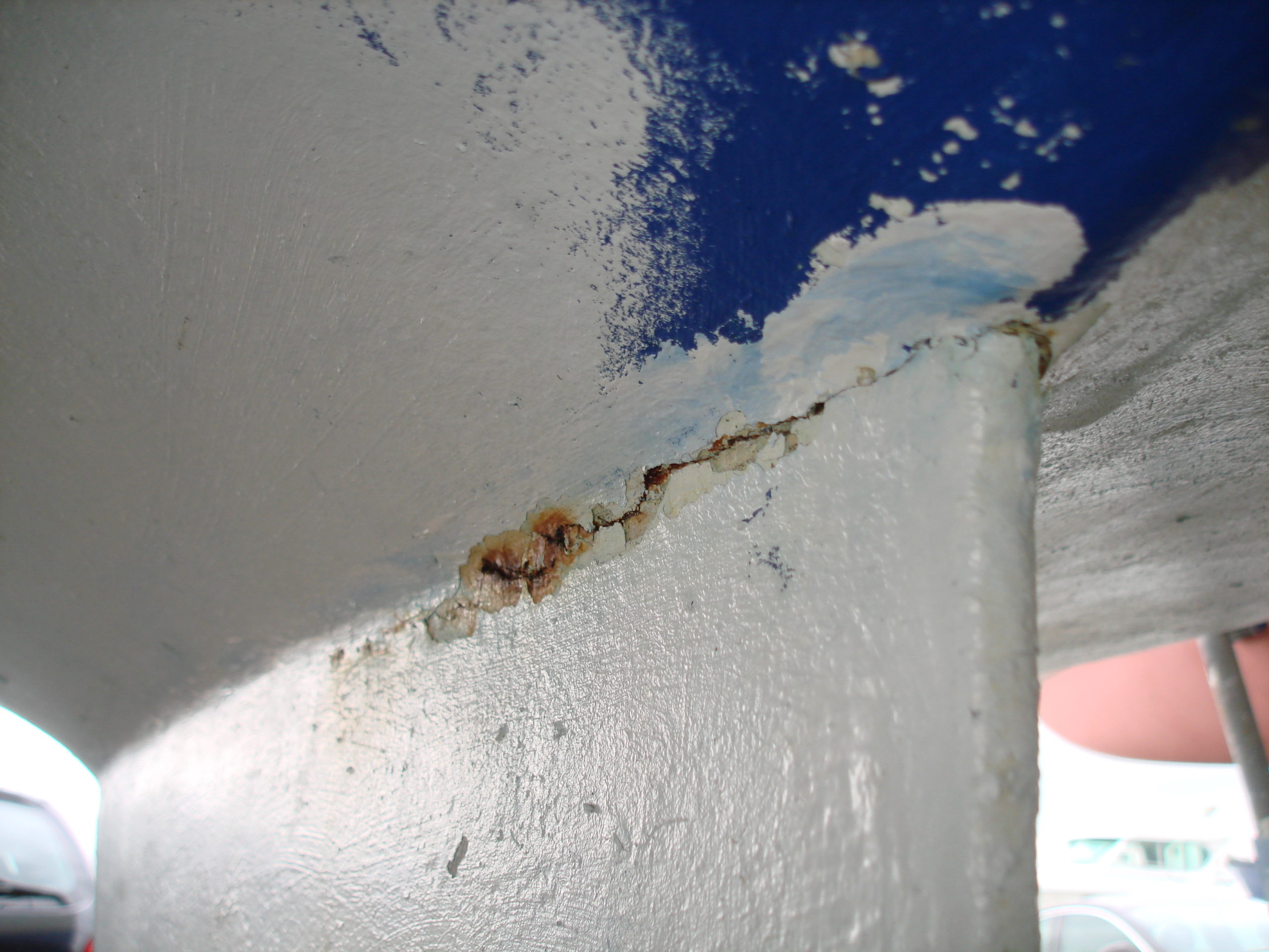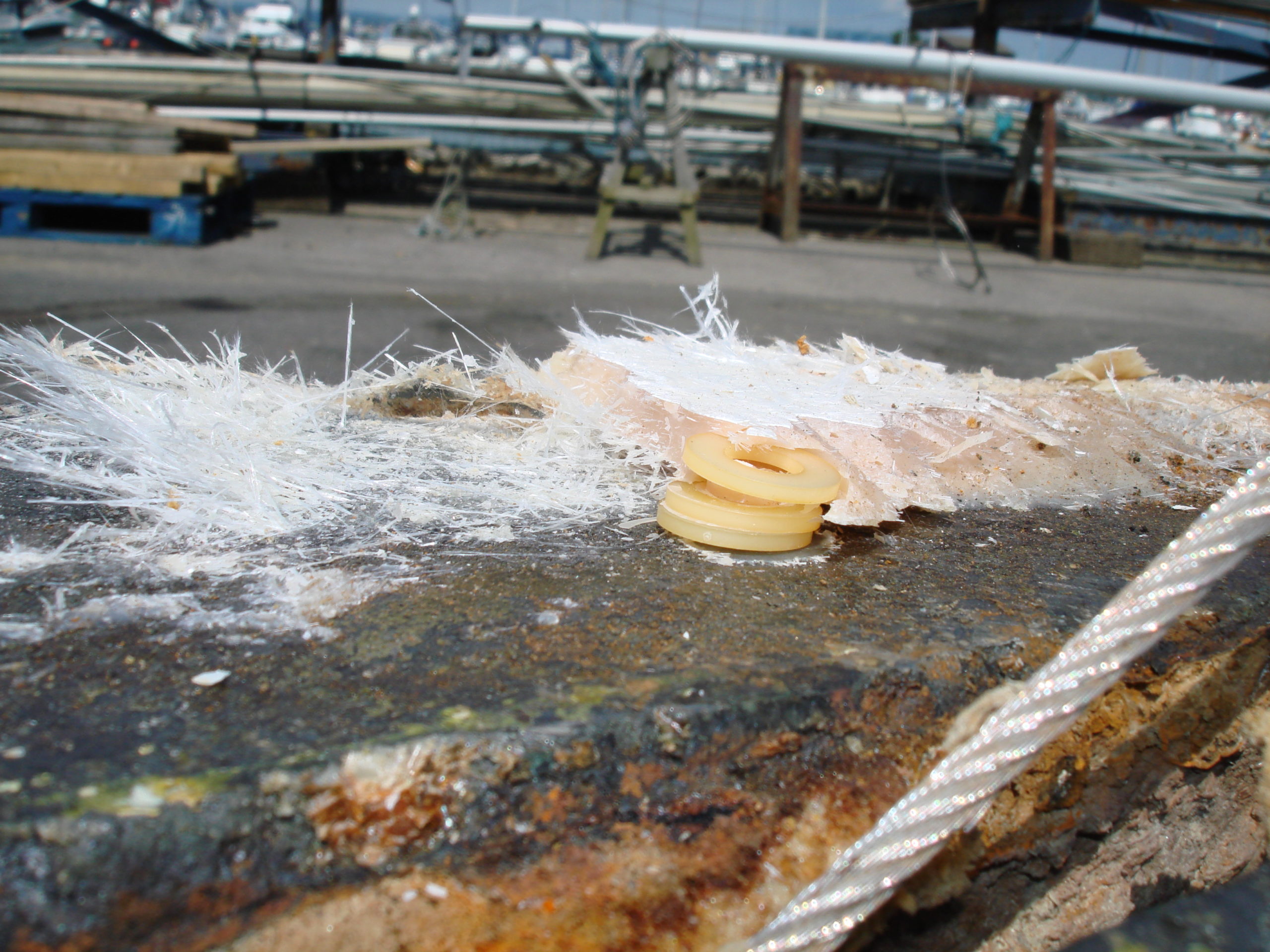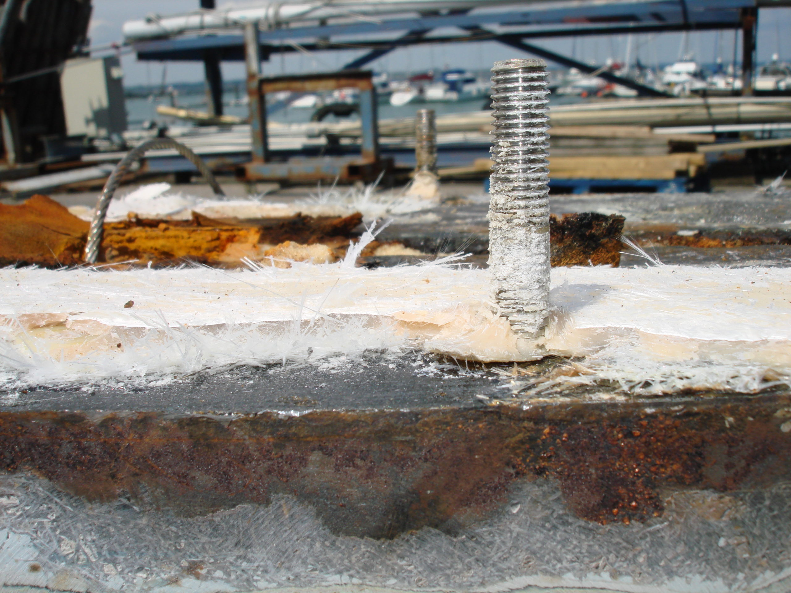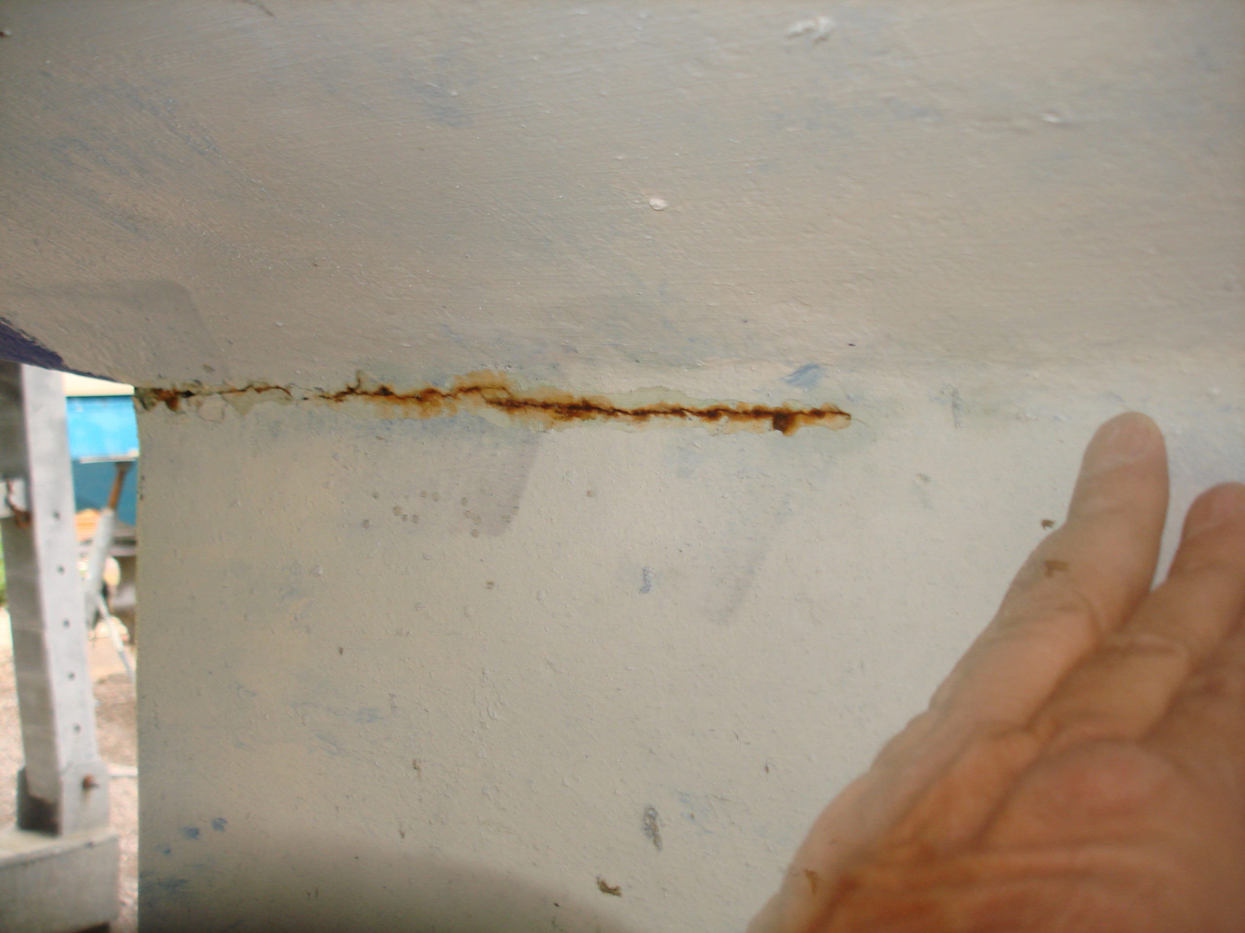 Upon removal of the keel there was some fracturing found on the laminate face of the hull, we had to repair this by grinding back the hull join in way of fracture, laminate back to good glass then re-laminate area back to orginal thickness.