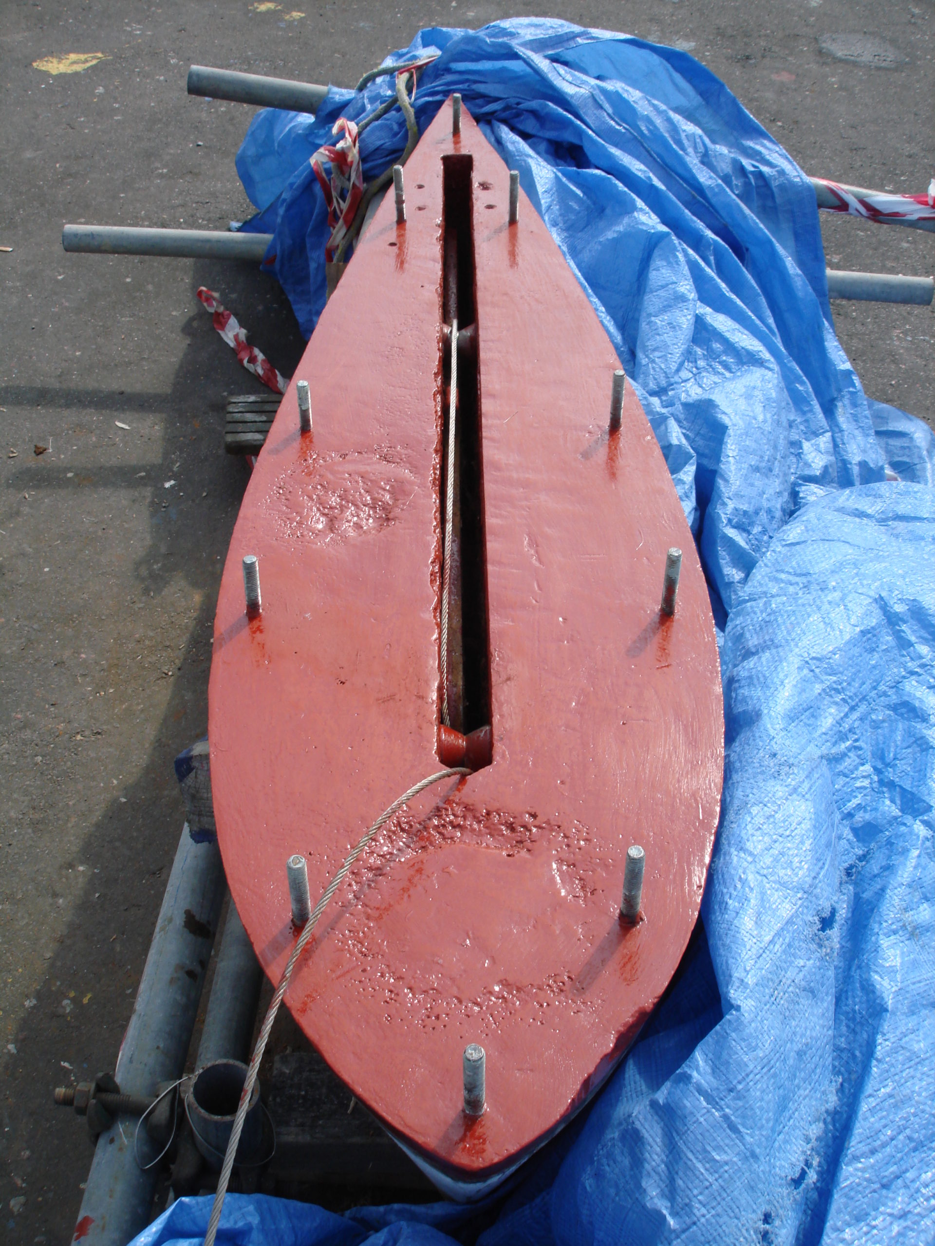 The drop pin rollers were all removed and checked to be ok, all assemble was then refitted in preperation for refitting of the keel.