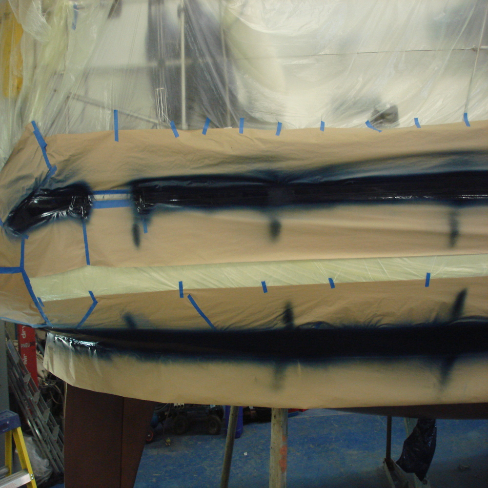 The lines were sprayed with 545 primer (4 coats) then sanded and sprayed with Awlgrip 2000 Navy Blue.