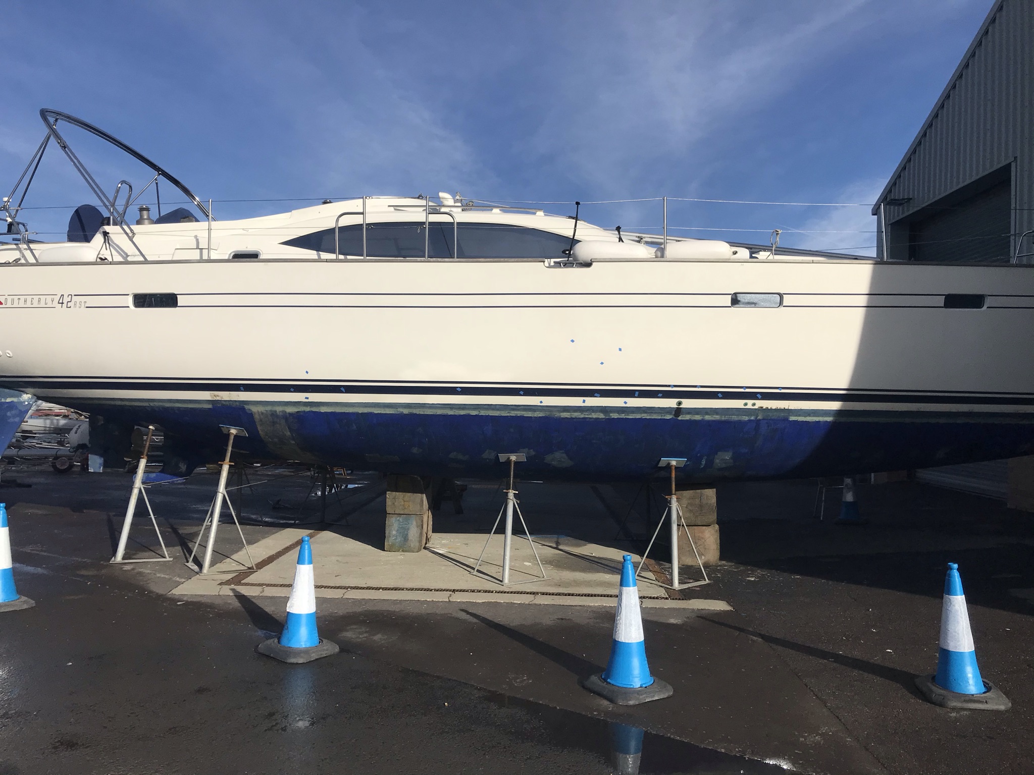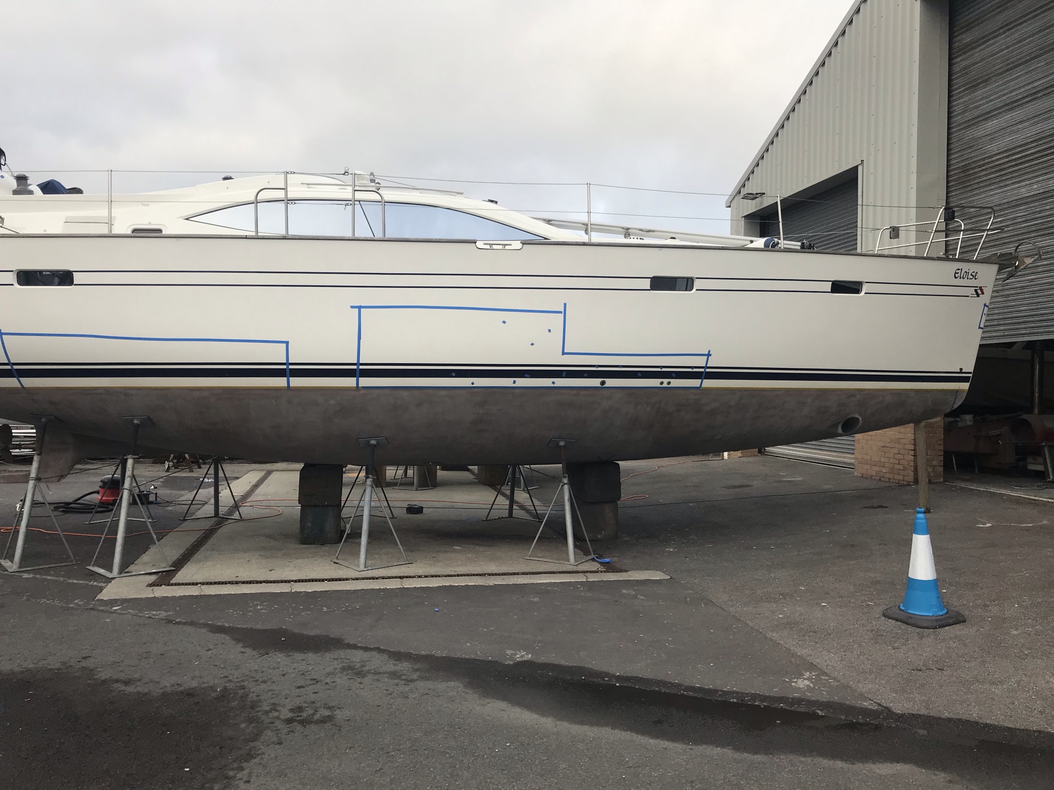 Upon lift out at Southsea, we carried out a walk around inspection making note of any defects, gel repairs, teak condition etc.