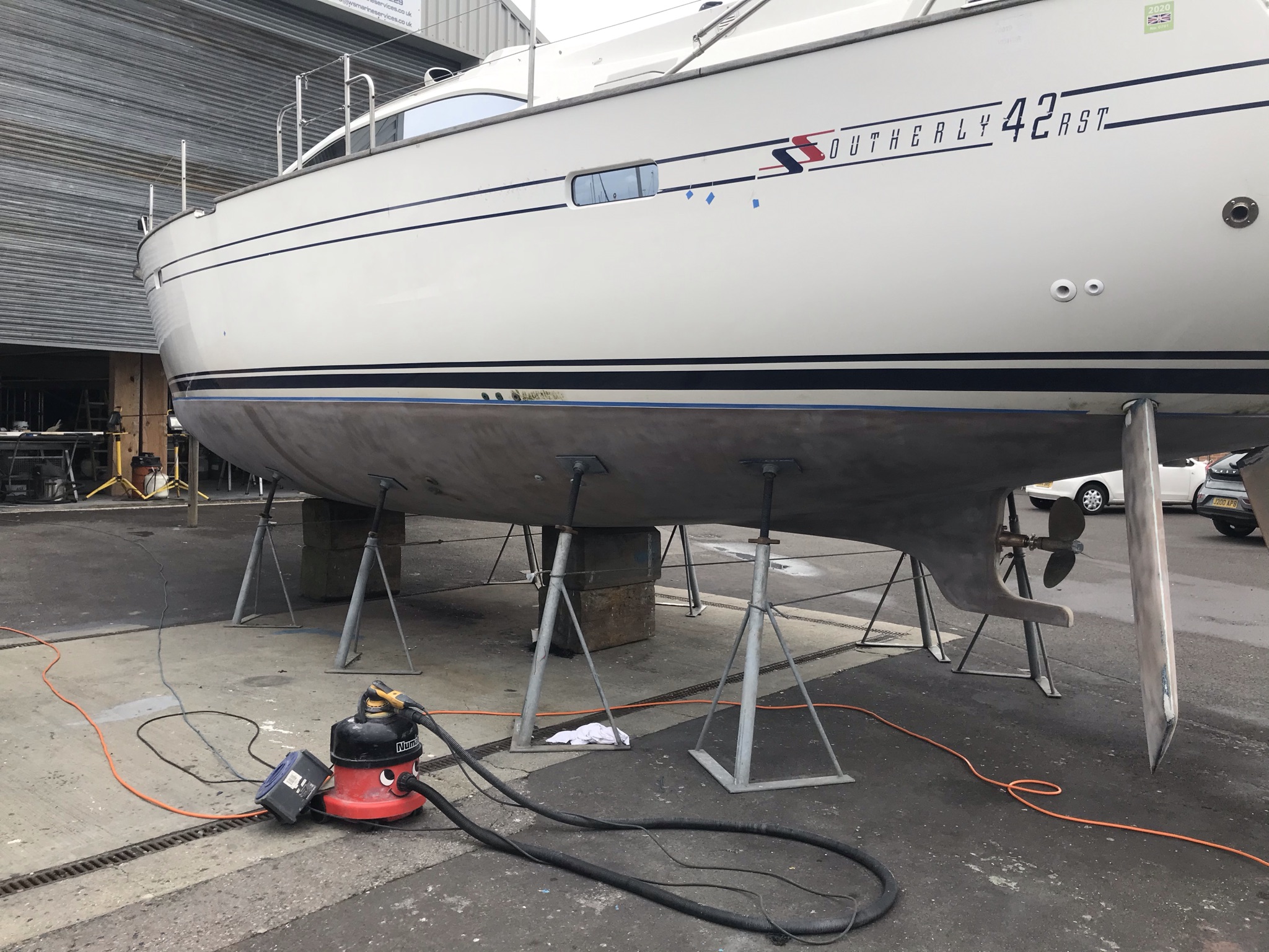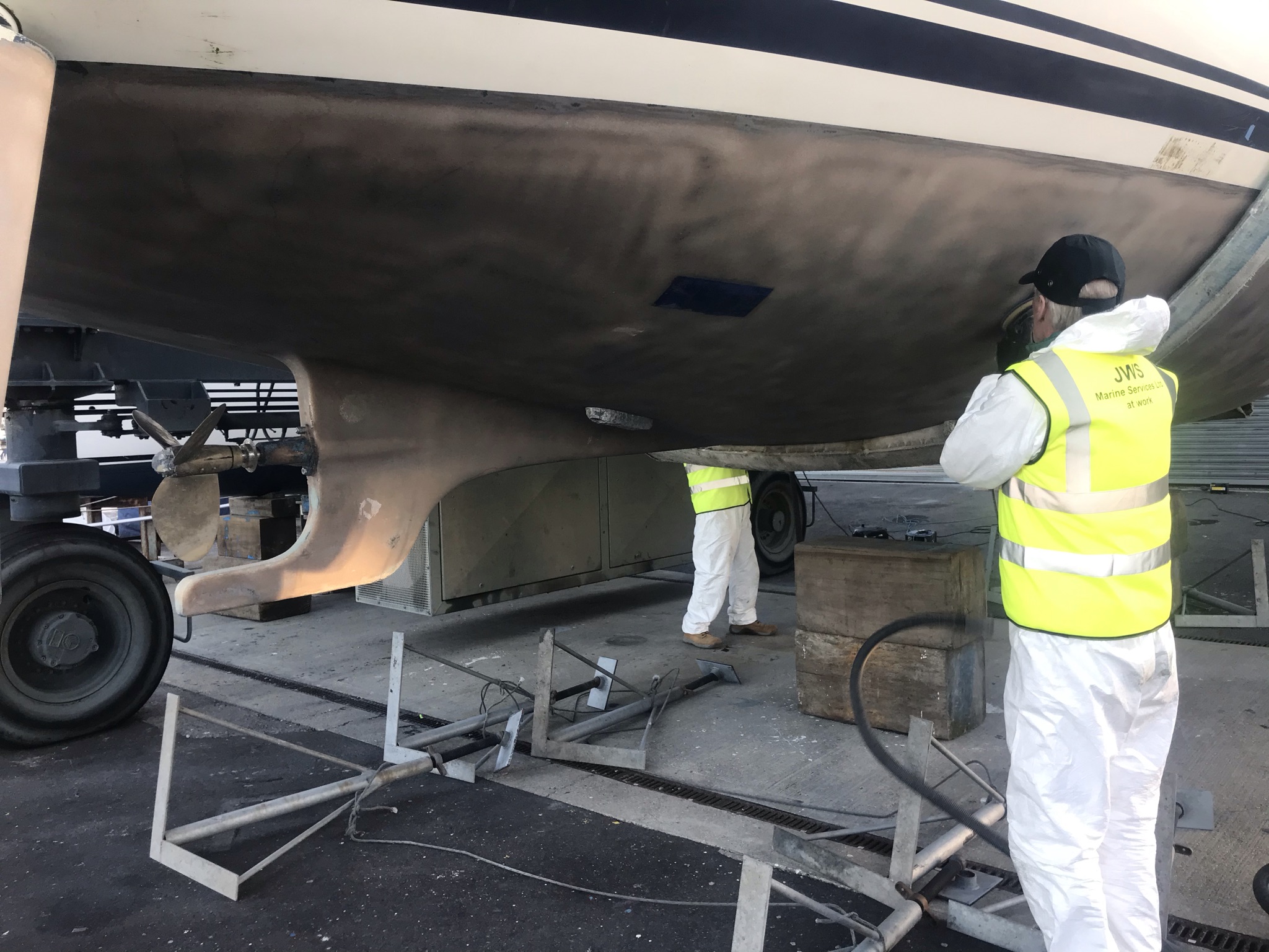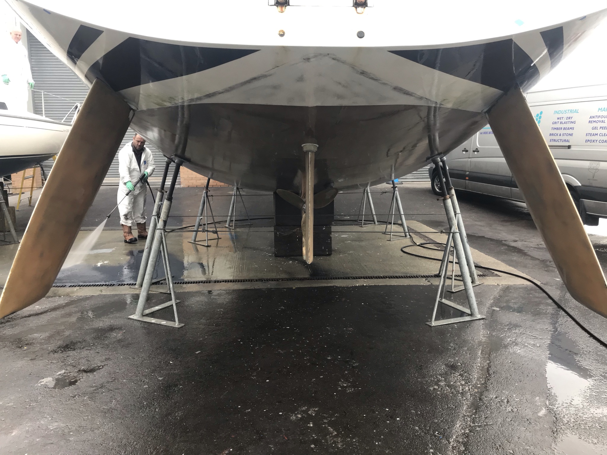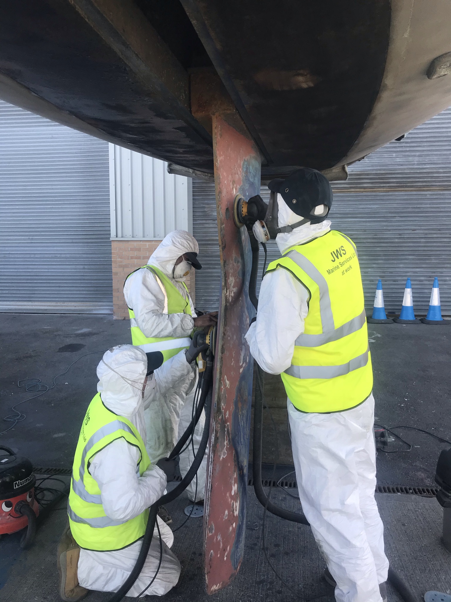 She was then blasted to remove all the old antifoul and any debri from the hulls surface.