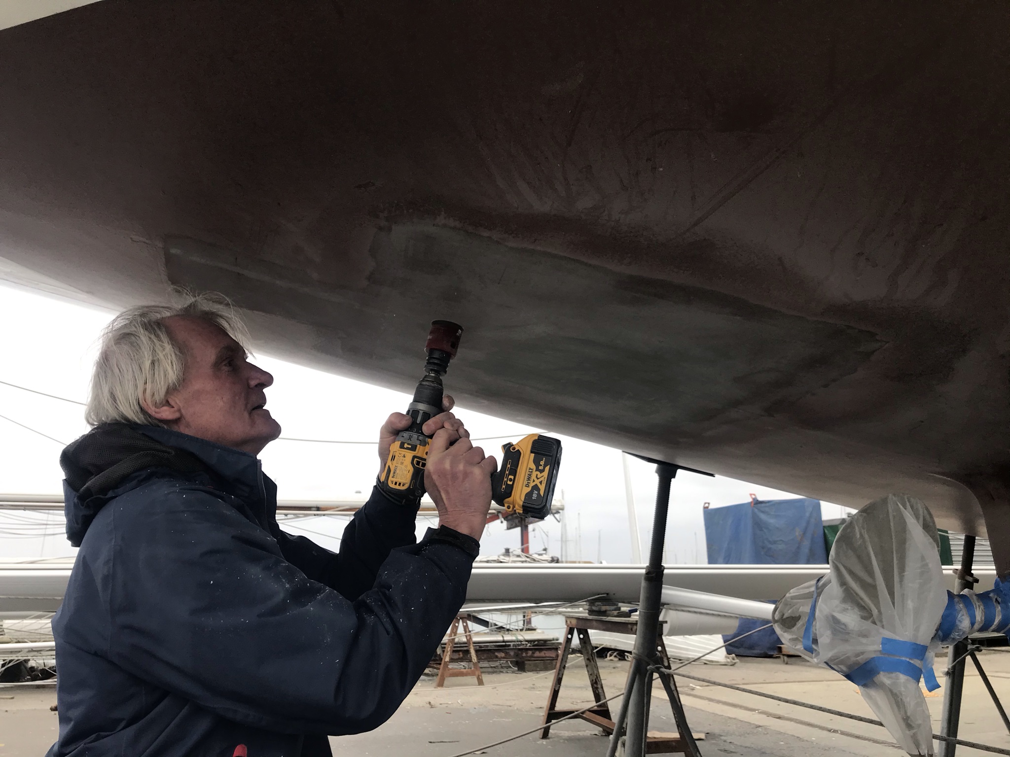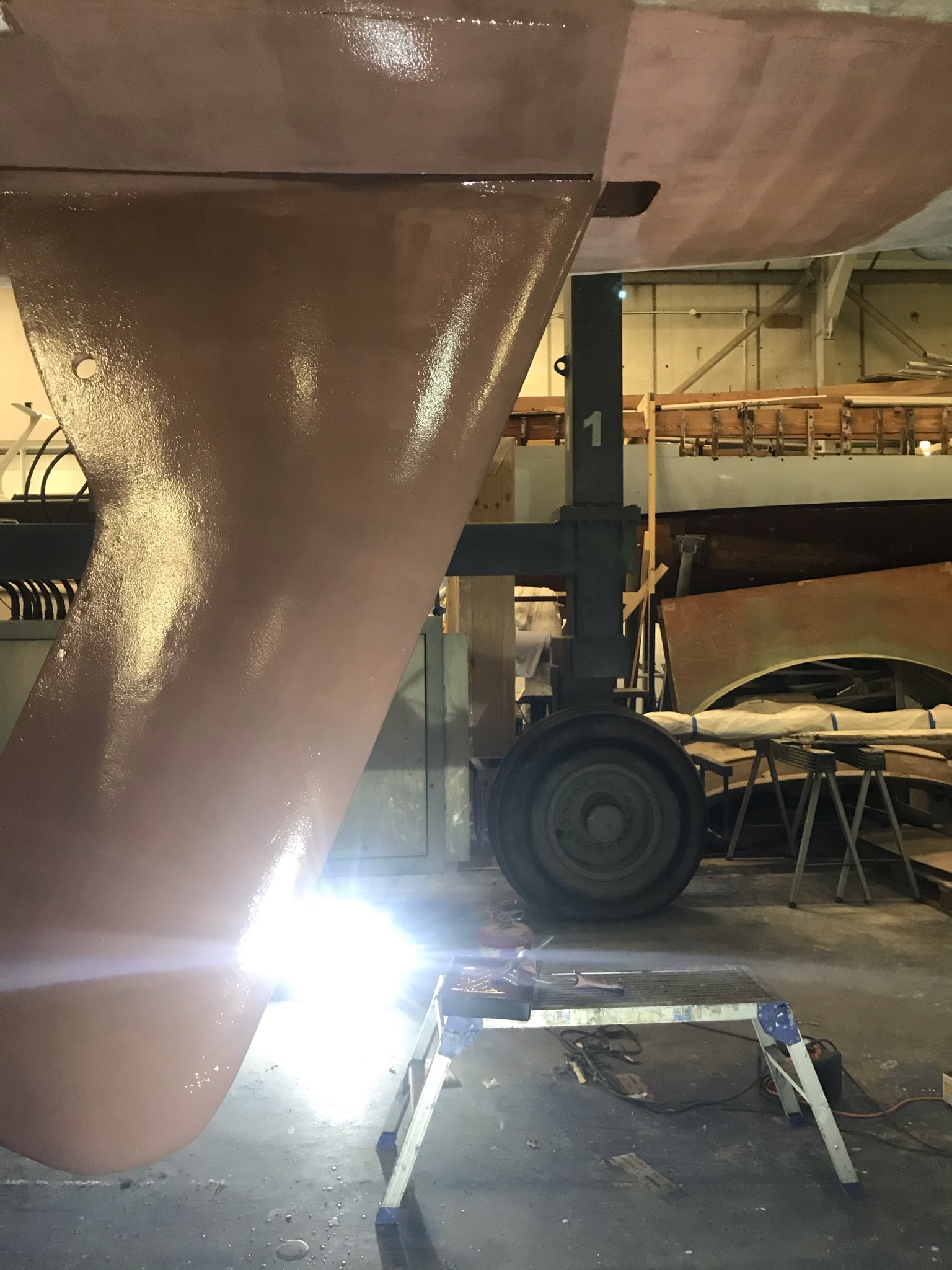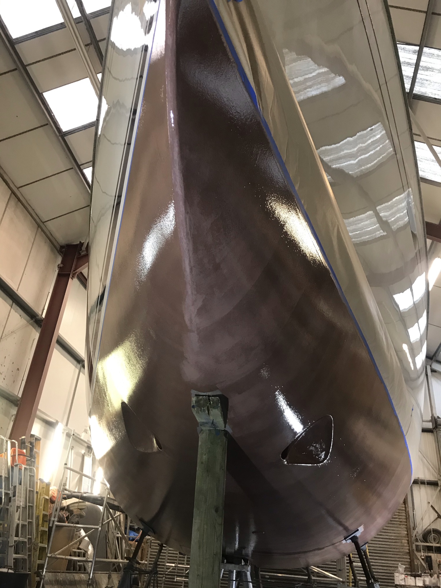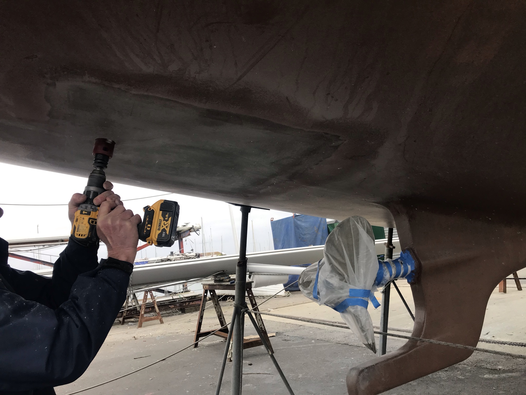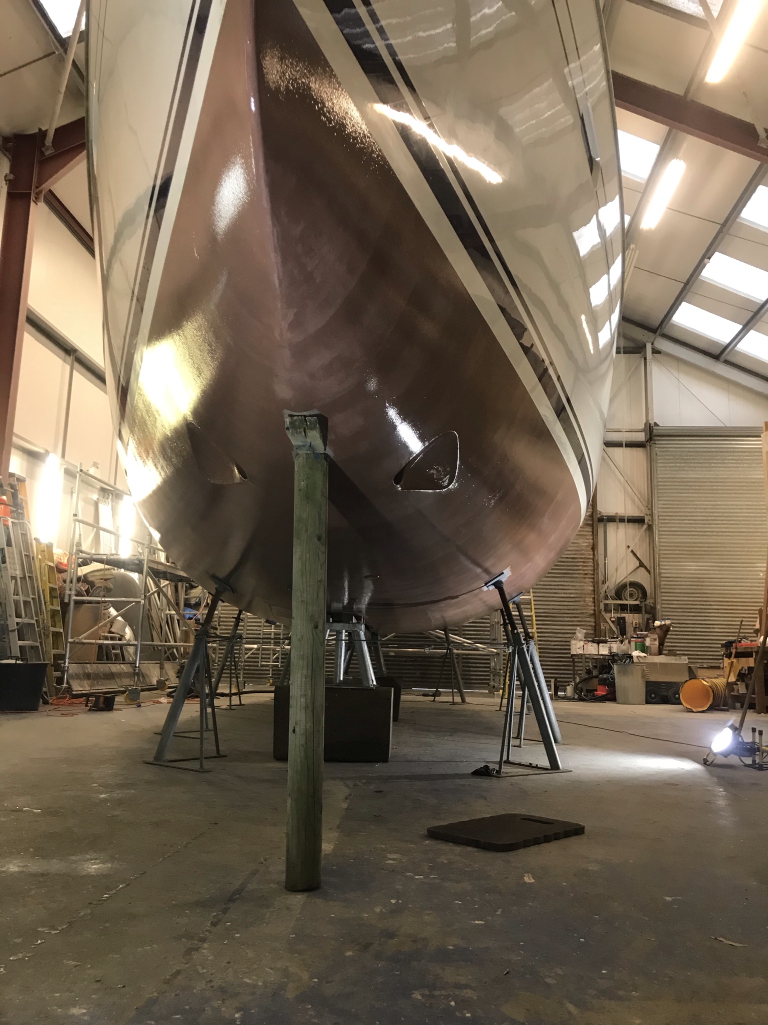 Next we prepped the hull and rudder for the Copper coat application, and applied 4 coats of Copper coat to hell and rudders, we also epoxied the keel as this was blasted along with hull.