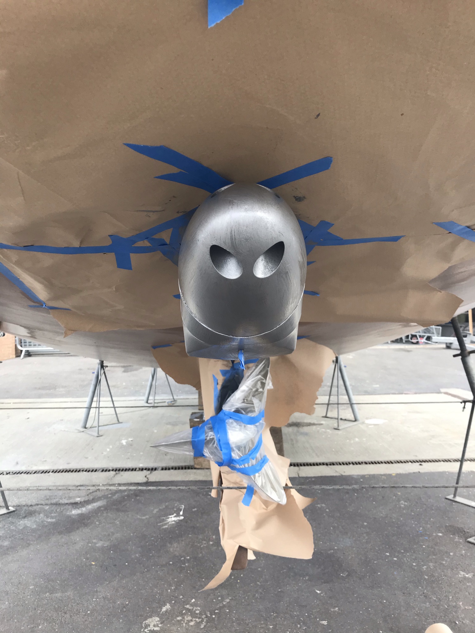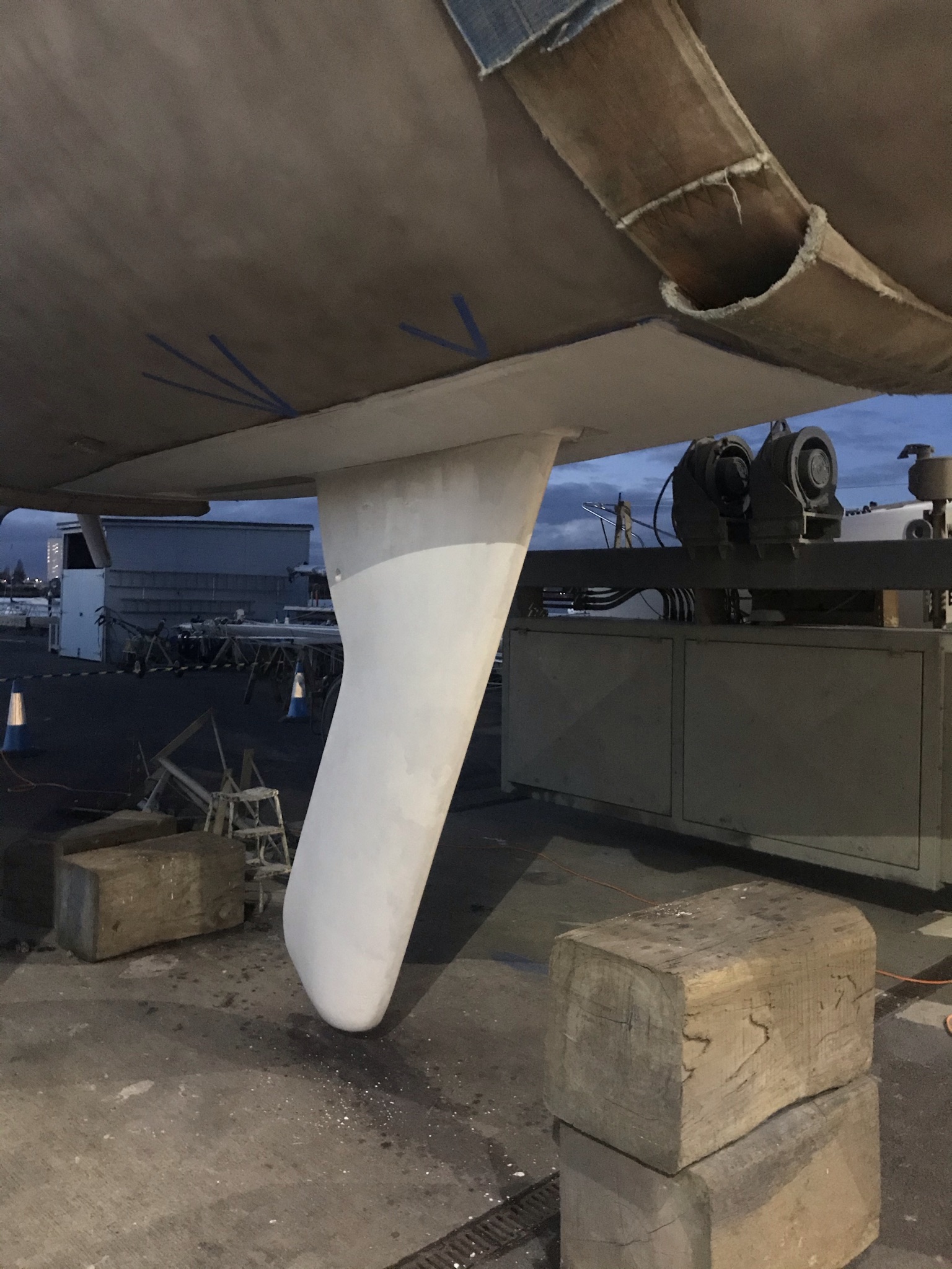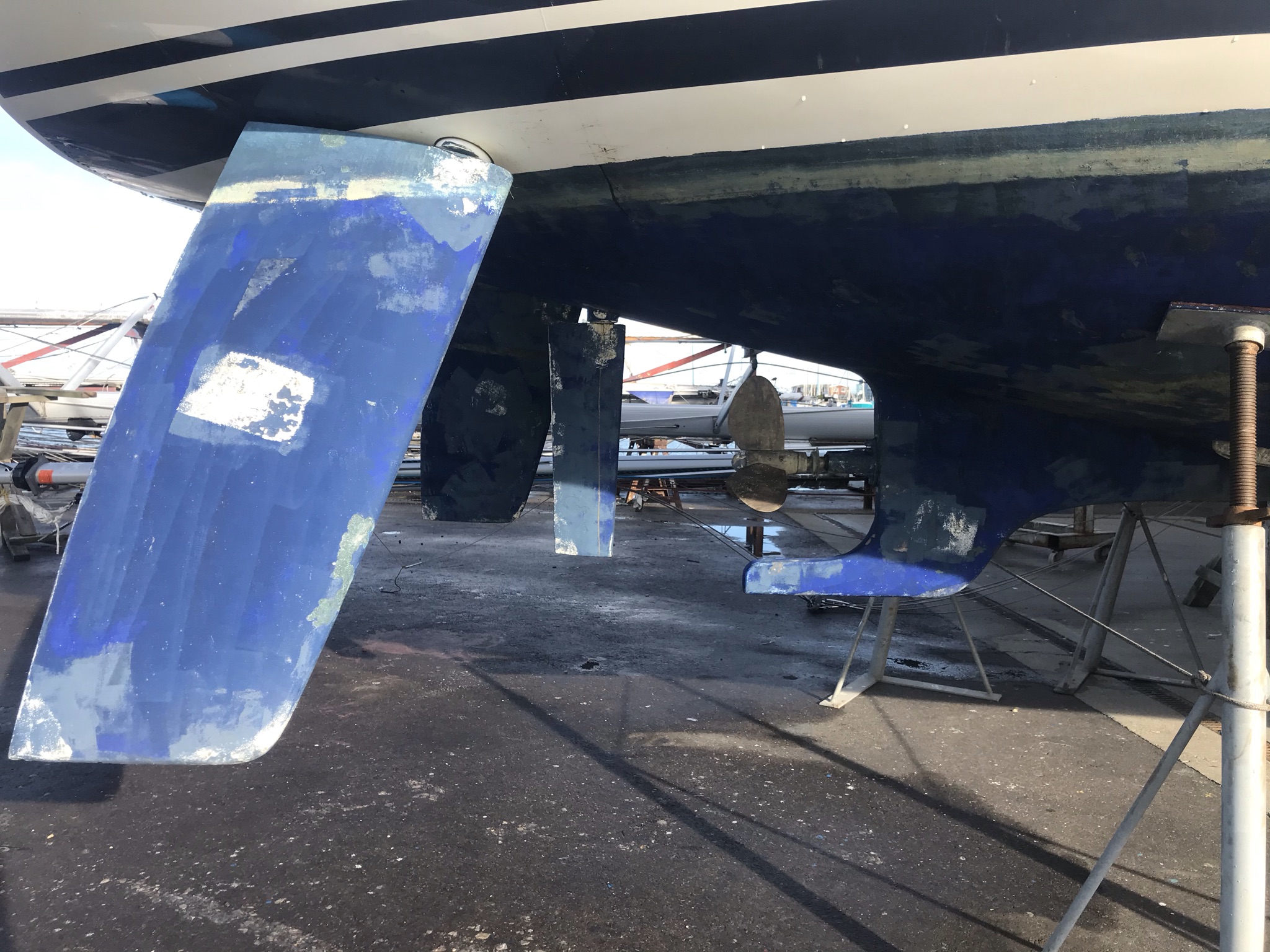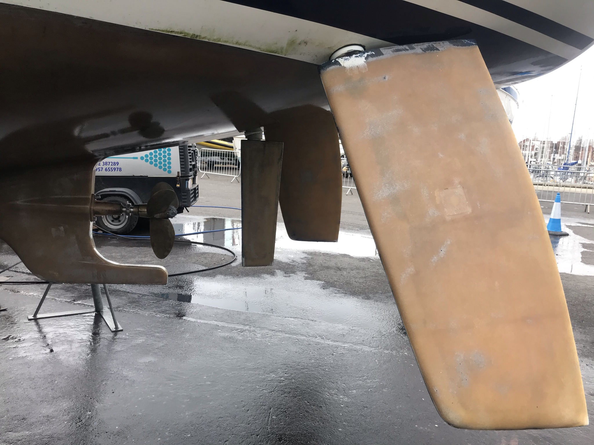 This boat has a drop keel and 3 rudders, so although not unusual this was not a standard Copper coat application, here is her story….