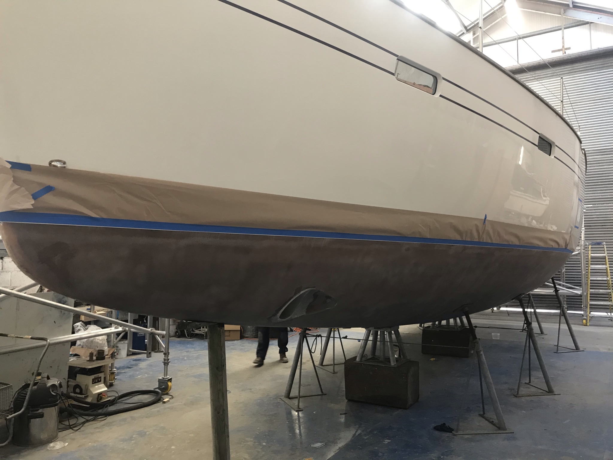 She was then sanded any defect, gel repair etc where marked using masking tape