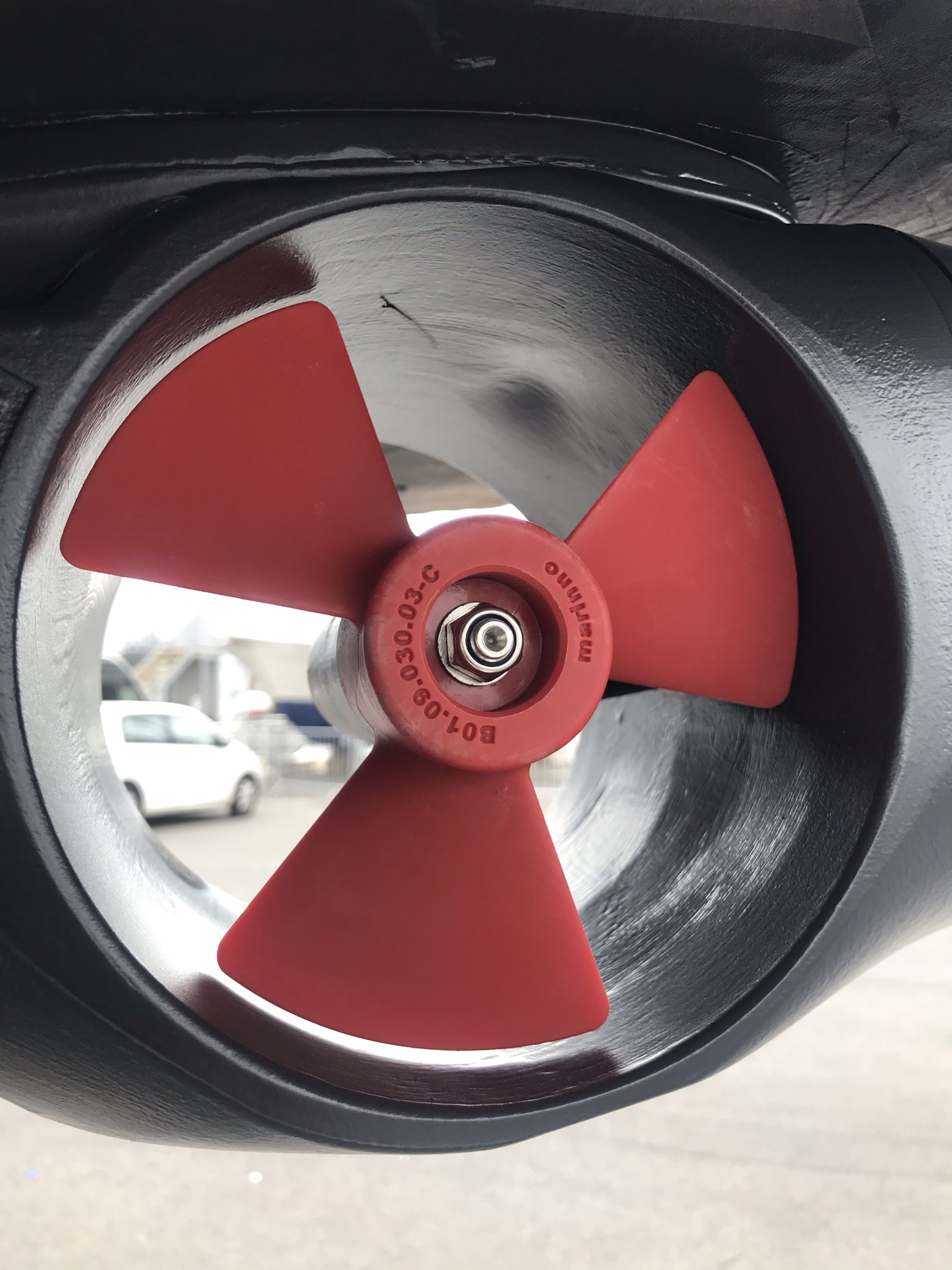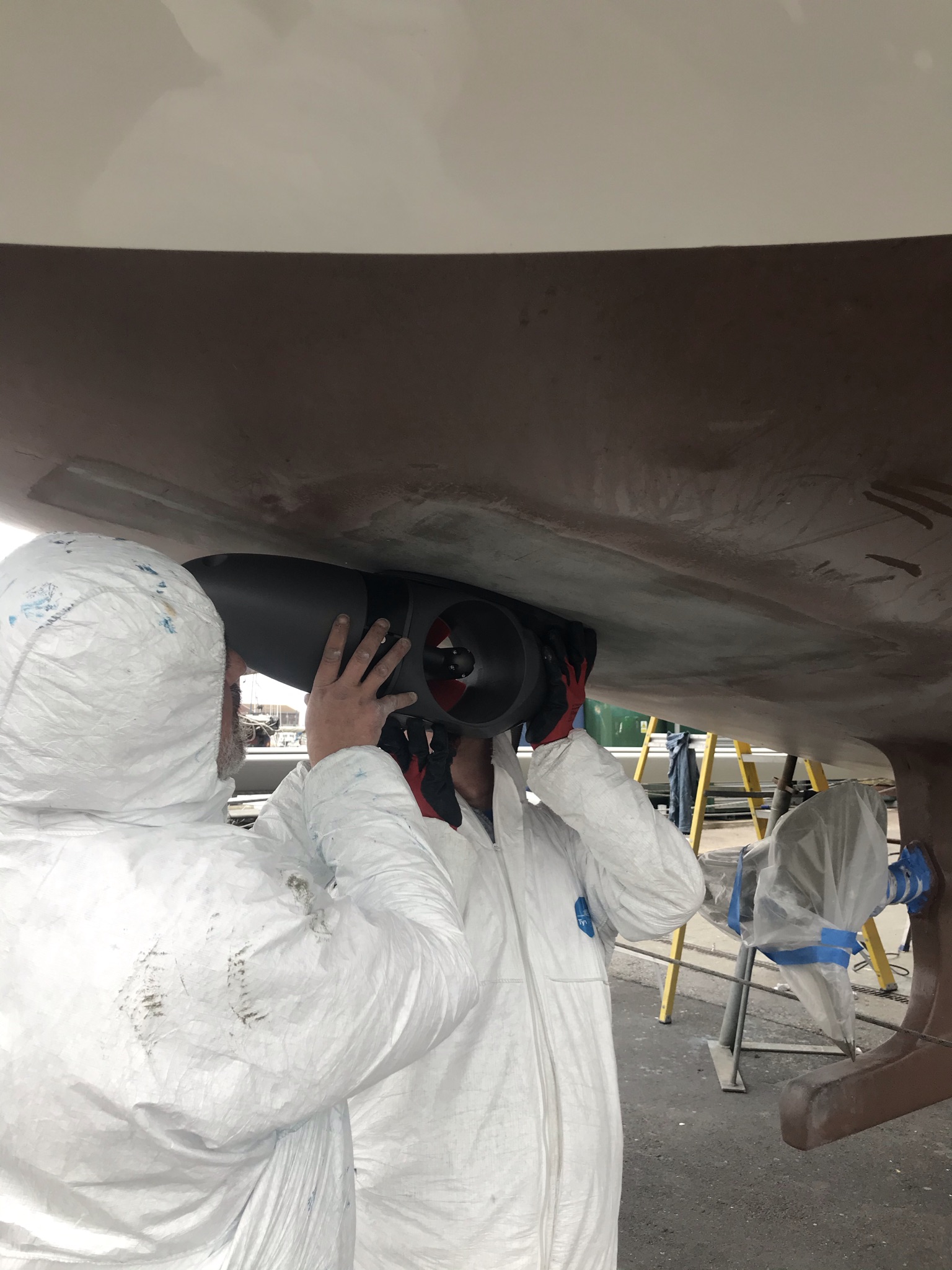 While she was out and having some work done the owners opted for a new stern thruster to be installed, the install process was as follows –