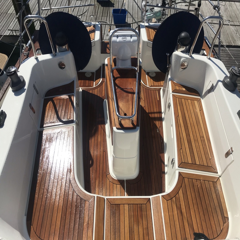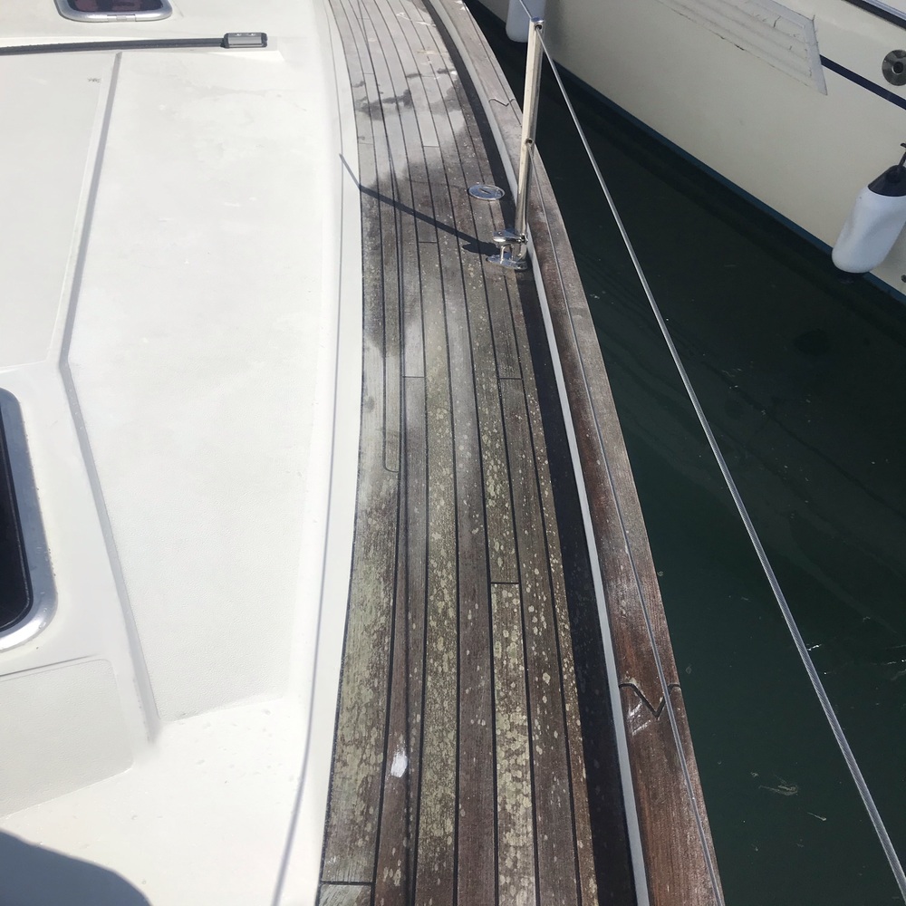 Our final job on this bat was to clean all teak with a teak cleaner and renovator, all areas were wiped down on completion.