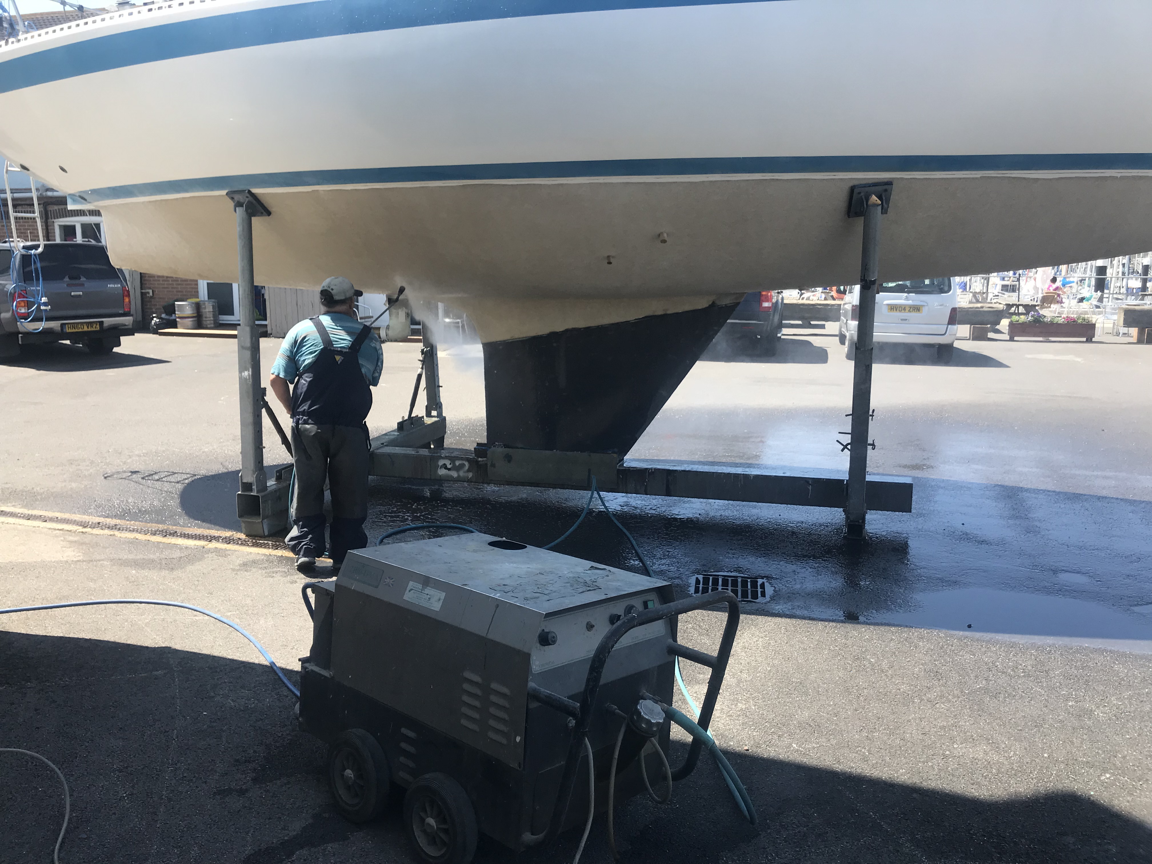 We also removed the rudder, to access behind and cleaned ready for the same application as the hull.