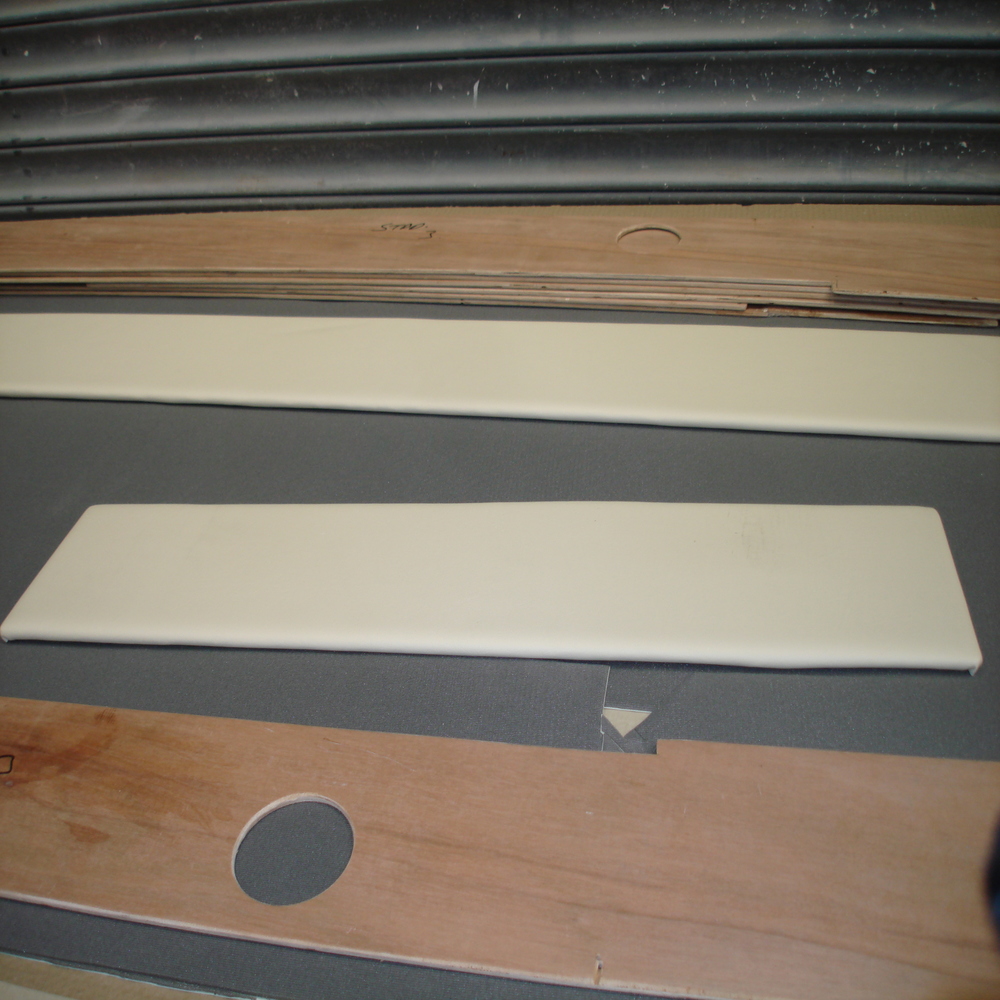 Quite a few of the panles had to be replaced so we set about measuring and cutting the new panels from ply, these were thenc covered in Nautolex Vinyl, the colour used in this application was Ivory.