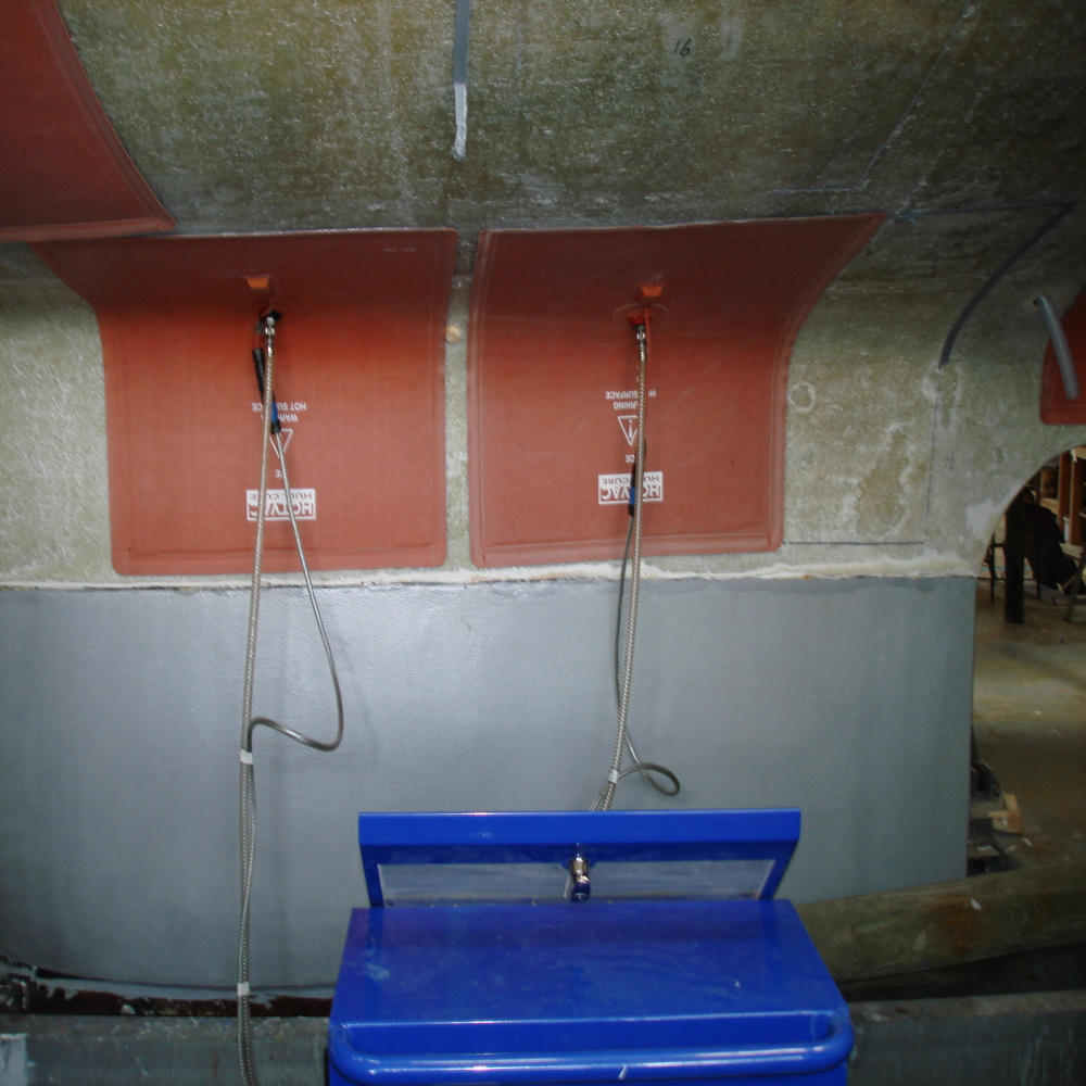 We generally tent up the hull mainly to protect the blasted hull, before proceeding to the hot-vac treatment, however with this project we tented her then left her with inferred heaters on localized seeping areas while tented for 7 week in total to try and draw the moisture from her hull.