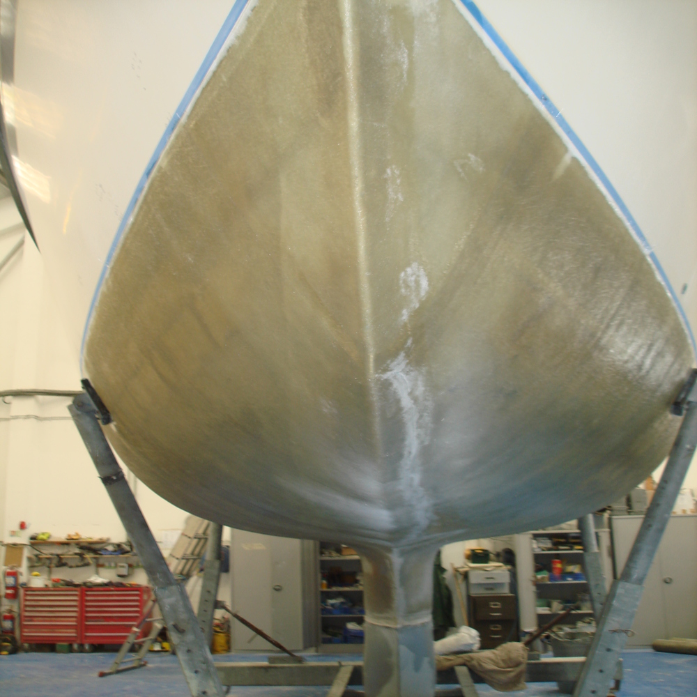We applied 1 layer, the hull was then fill and faired off before appliying the further 4 coats.
