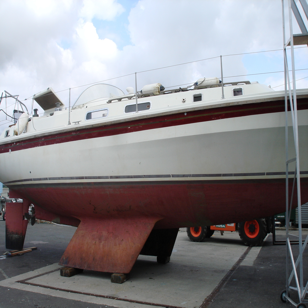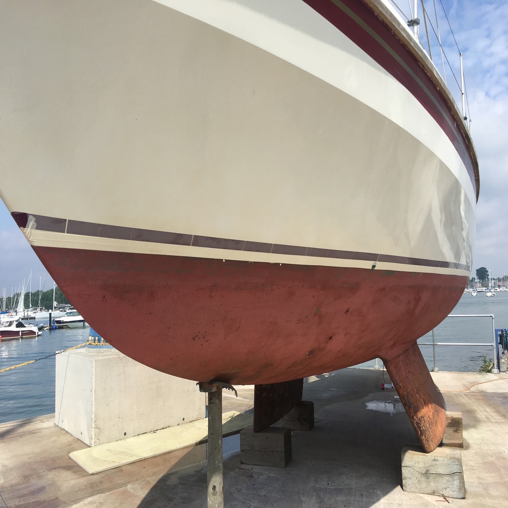 While with us she also had her thru hulls replaced and her rudder split, cleaned and re-bonded.