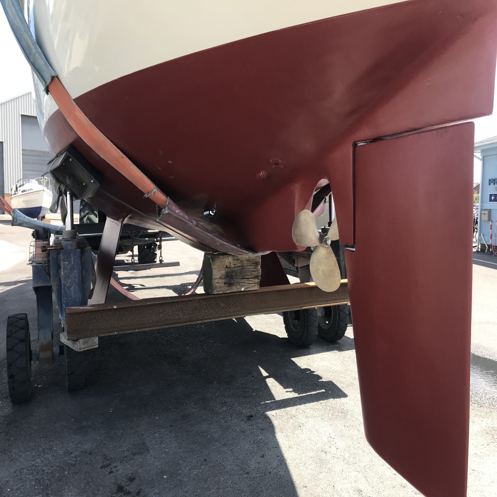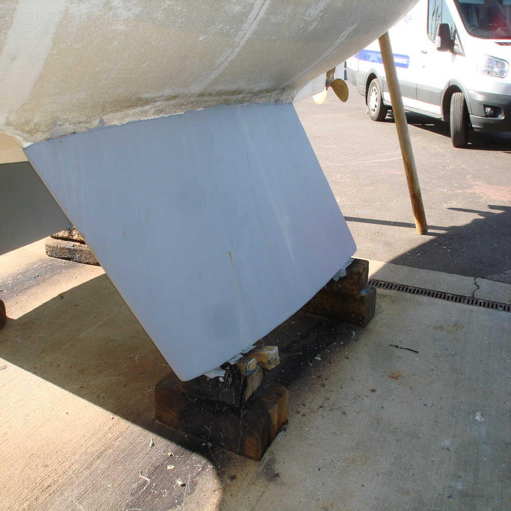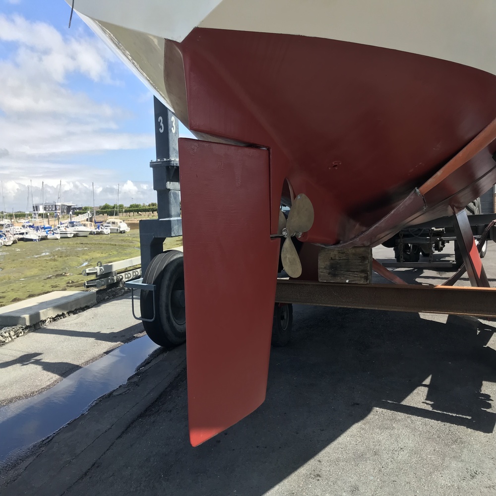 The rudder was then epoxied to the same spec as the hull, primed and antifouled.