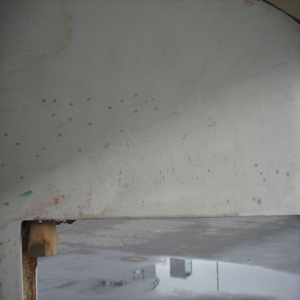 14 patches were agreed by the surveyor for reinforcement and comprised of 1 layer of 450 csm powder and the 2 layers of 600 csm bound matting with a tapered area of 25mm on all layers and between the keels will be 4 layers of 450 csm.