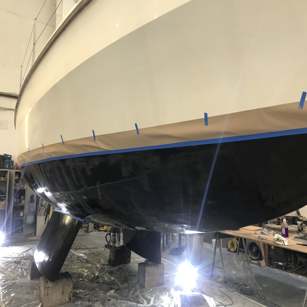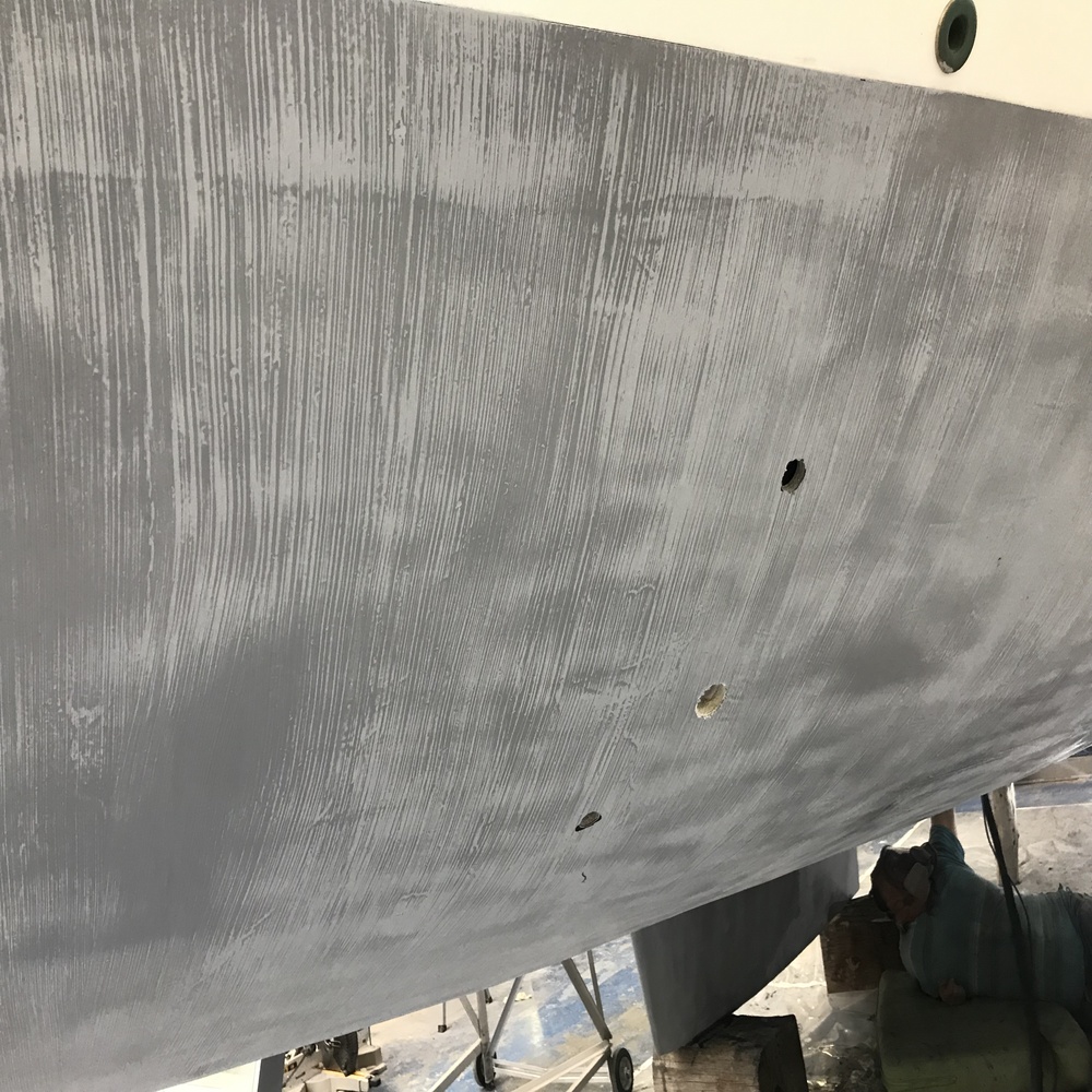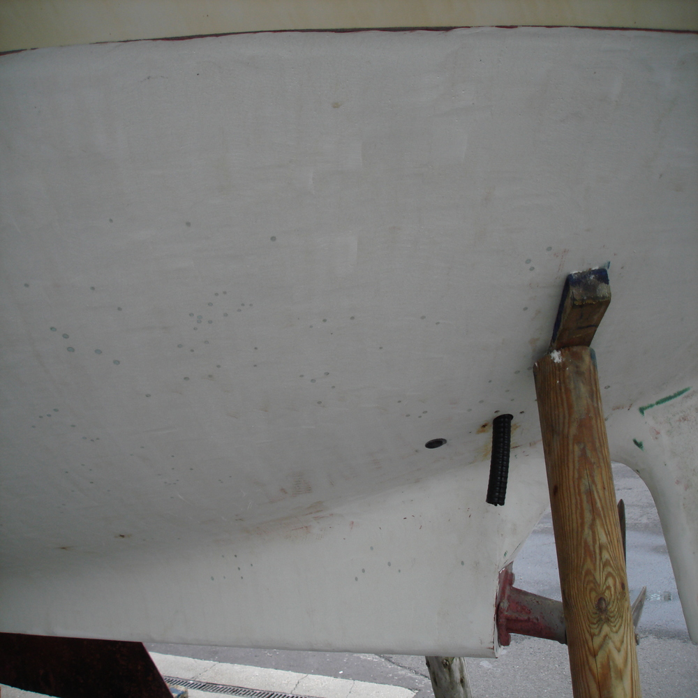 The hull was filled and fared before applying the further 4 Epoxy Osmosis coatings.