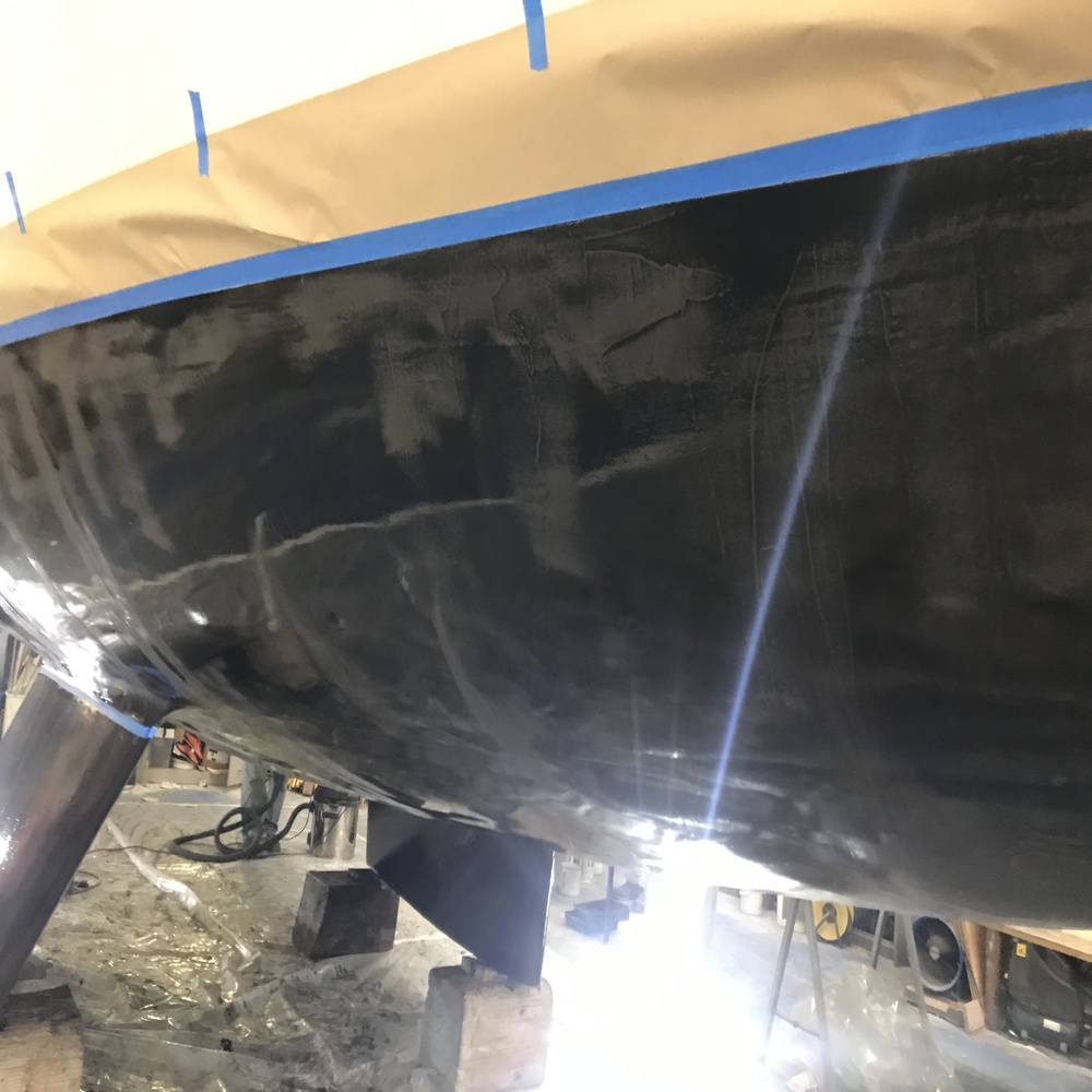 During the Osmosis treatment both keels were blasted and 5 coats of Corro-tech epoxy were applied and new keel seams were done.